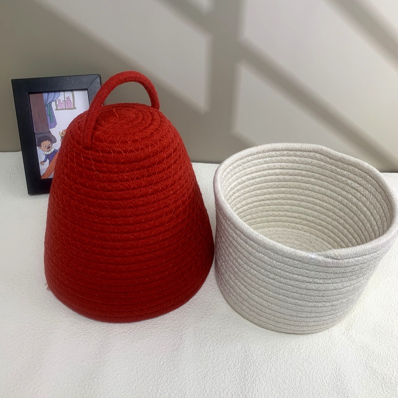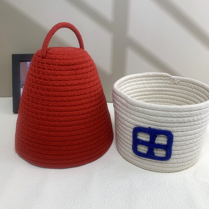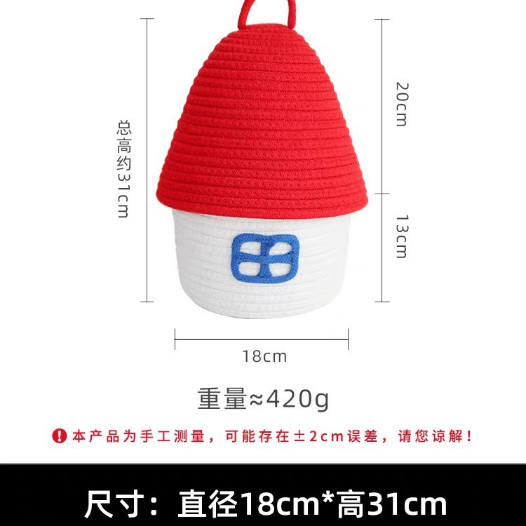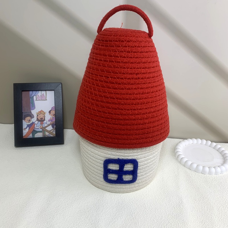 면실로 짠 바구니, 뚜껑이 있는 대용량 수납통, 귀여운 집 작은 집 수납바구니, 데스크탑 잡화 수납