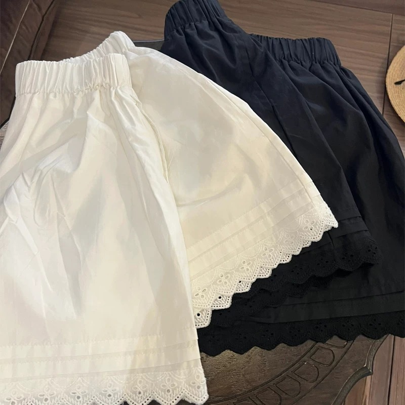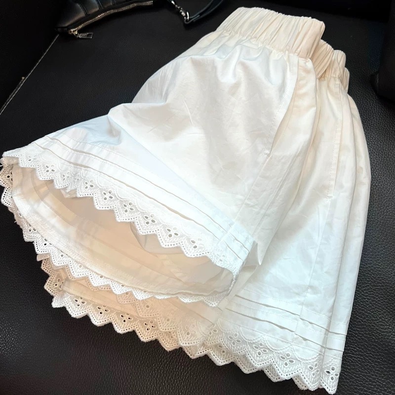 自留爆款推荐~皎洁月光 蕾丝拼接白色休闲短裤女夏季显瘦阔腿裤子