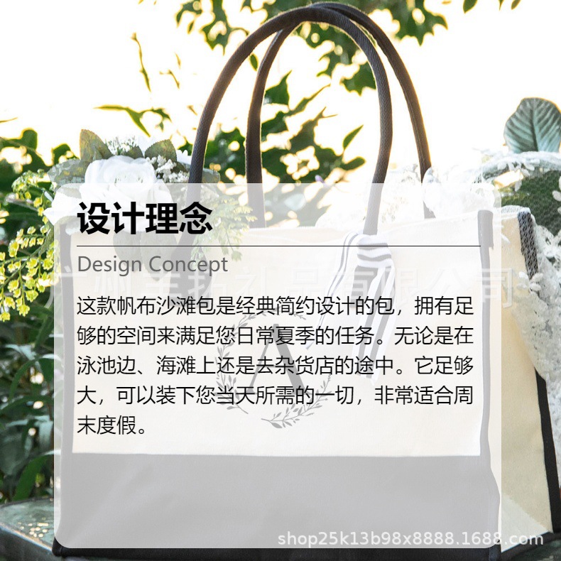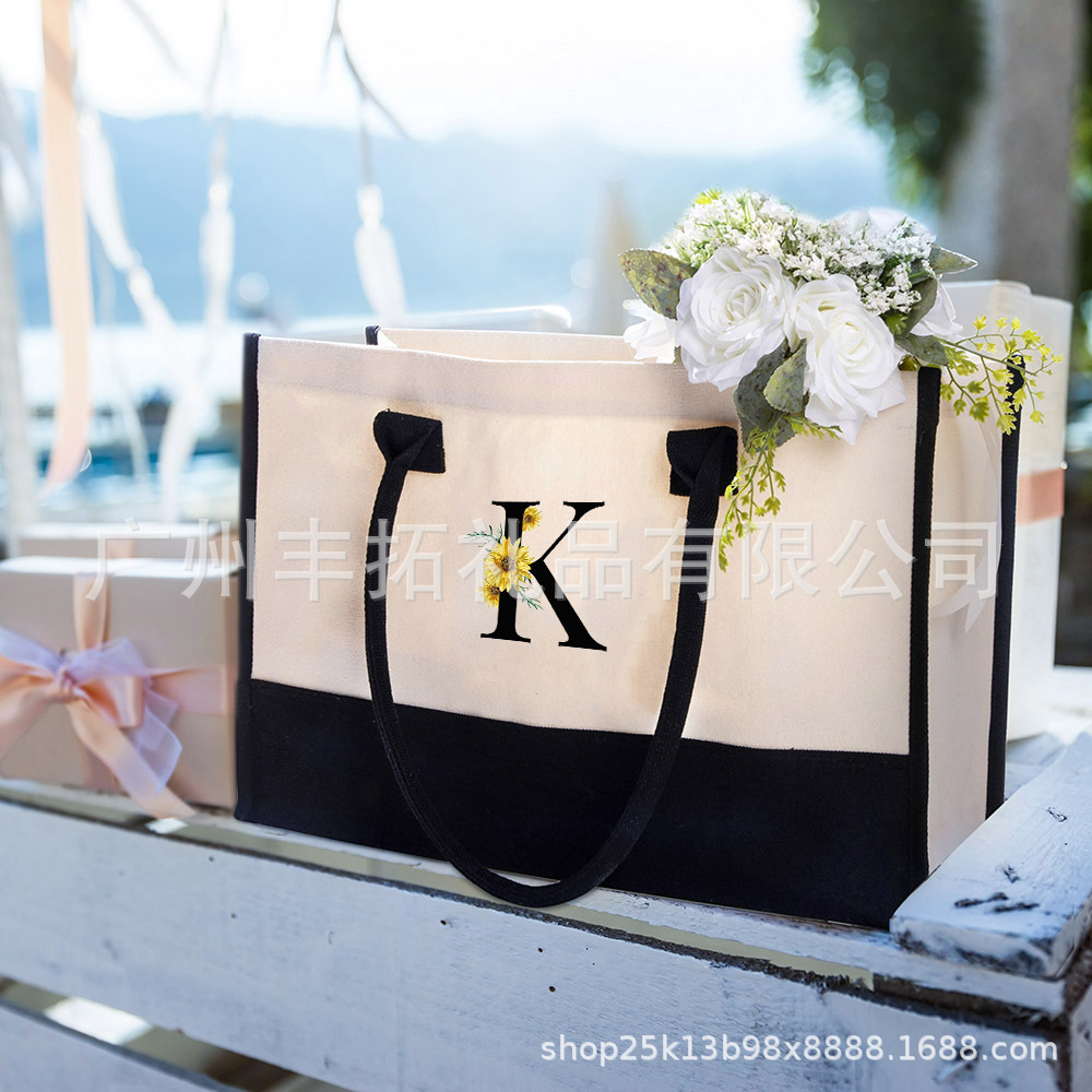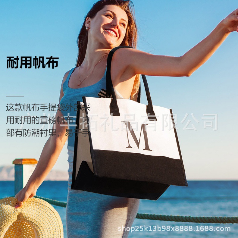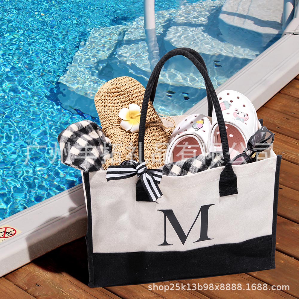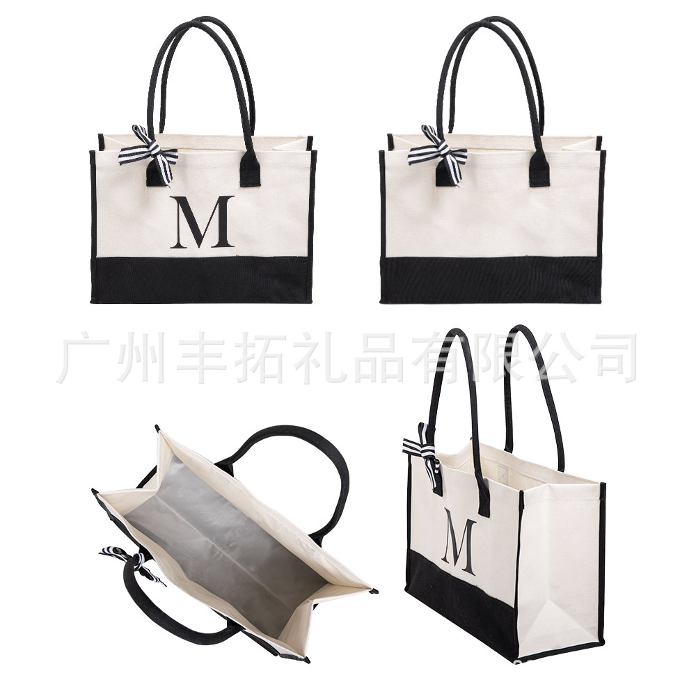 2024 새로운 스타일의 레터 머신 자수 핸드백 레트로 흑백 캐주얼 쇼핑 캔버스 토트 백