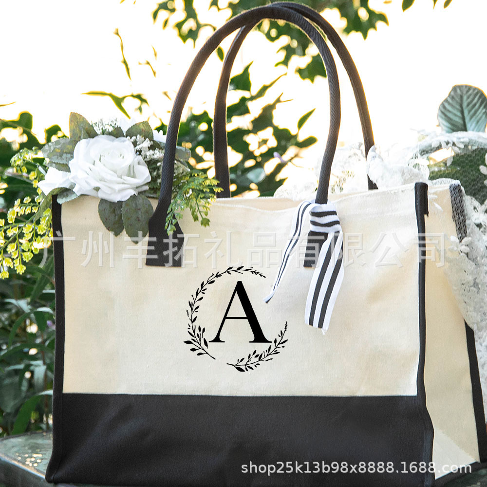 2024 새로운 스타일의 레터 머신 자수 핸드백 레트로 흑백 캐주얼 쇼핑 캔버스 토트 백스토어 가기