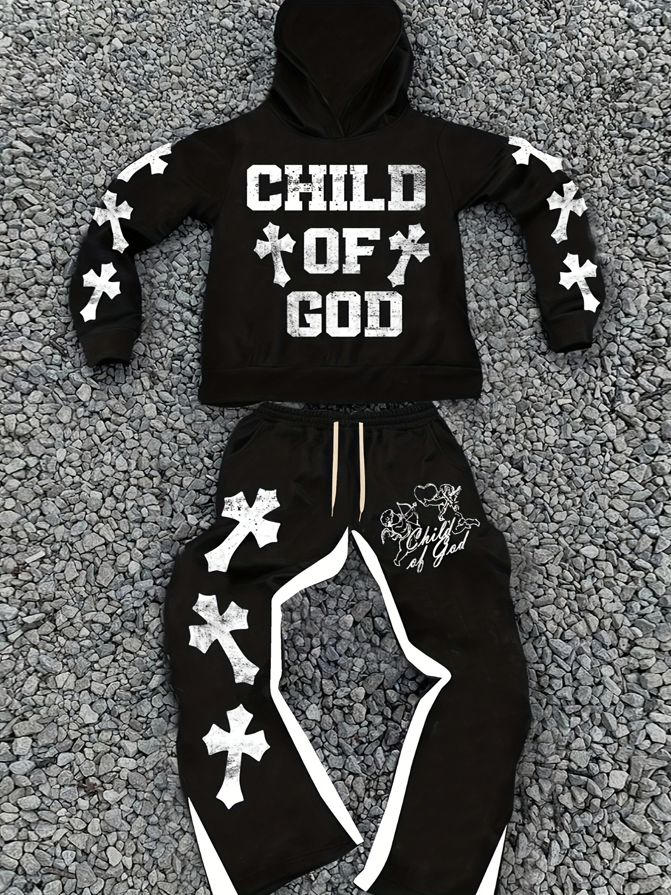 비수기 해외직구 2025 신상 남성 아메리칸 스타일 후드티 세트 트렌디 스포츠 브랜드 크로스 하이스트리트