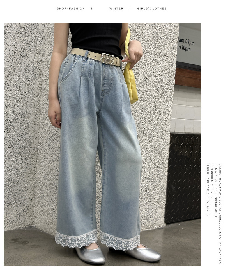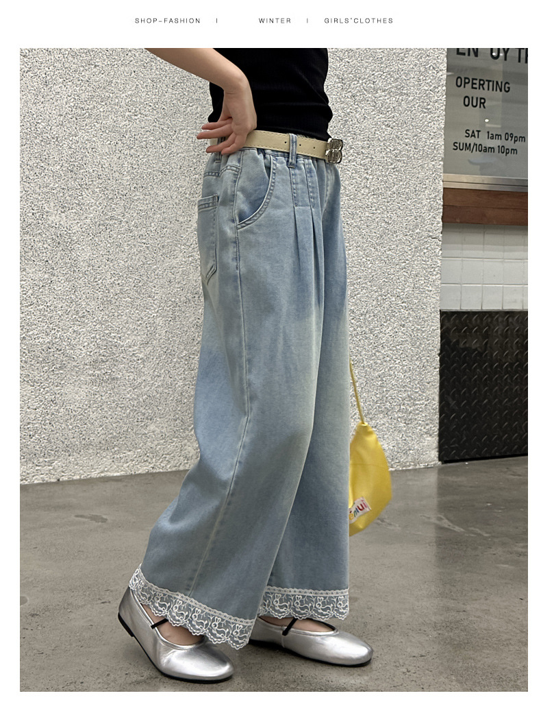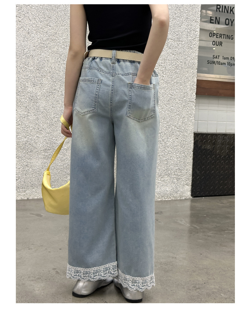 여름 새 스타일 여아 청바지 중대형 아동용 2025 여름 슬림 레이스 여아 와이드 청바지스토어 가기