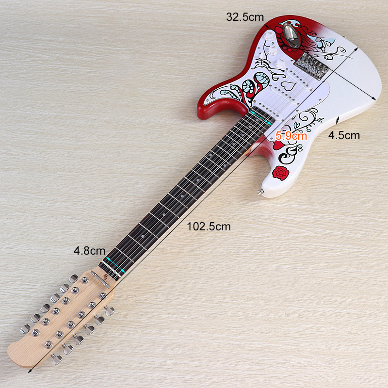 12 현 패턴 밝은 일렉트릭 기타 빨간색과 흰색 그라데이션 일렉트릭 기타 교육 공연 일렉트릭 기타스토어 가기