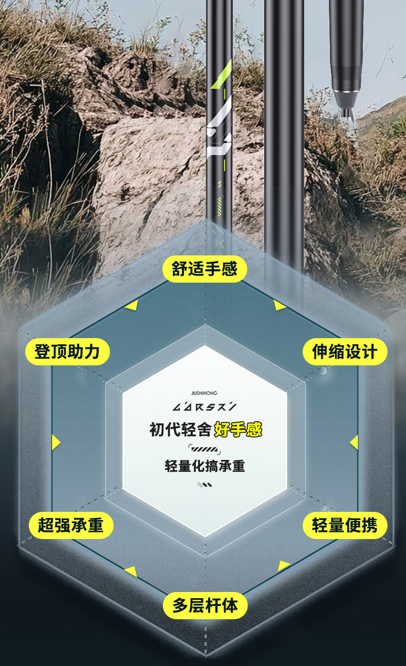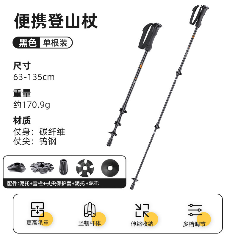 공장 직접 판매 텔레스코픽 탄소 섬유 트레킹 스틱 전문 야외 하이킹 트레킹 스틱 접이식 스틱 도매스토어 가기