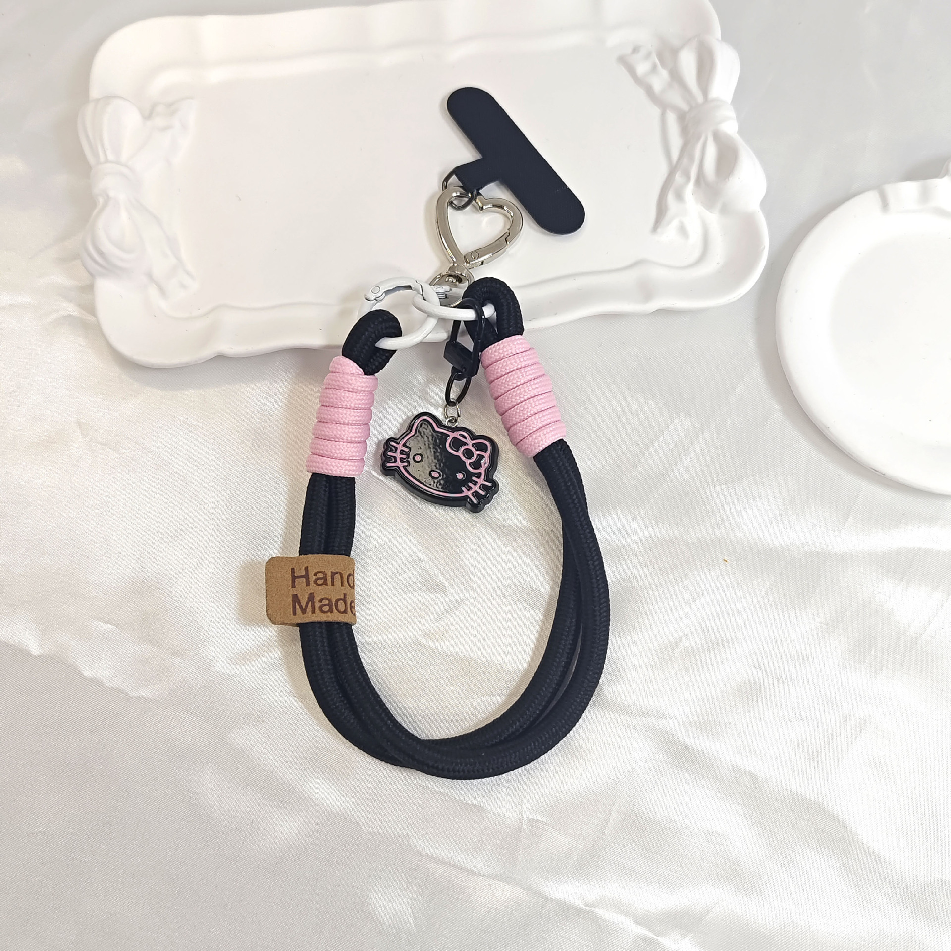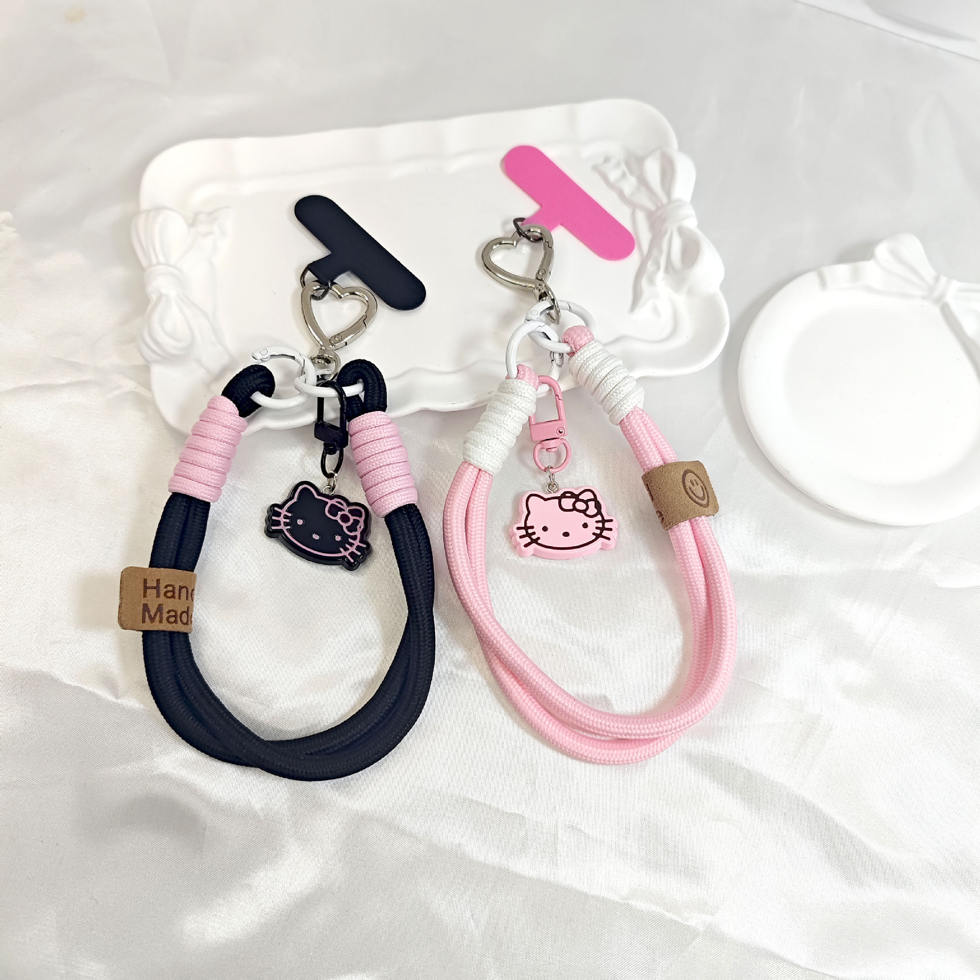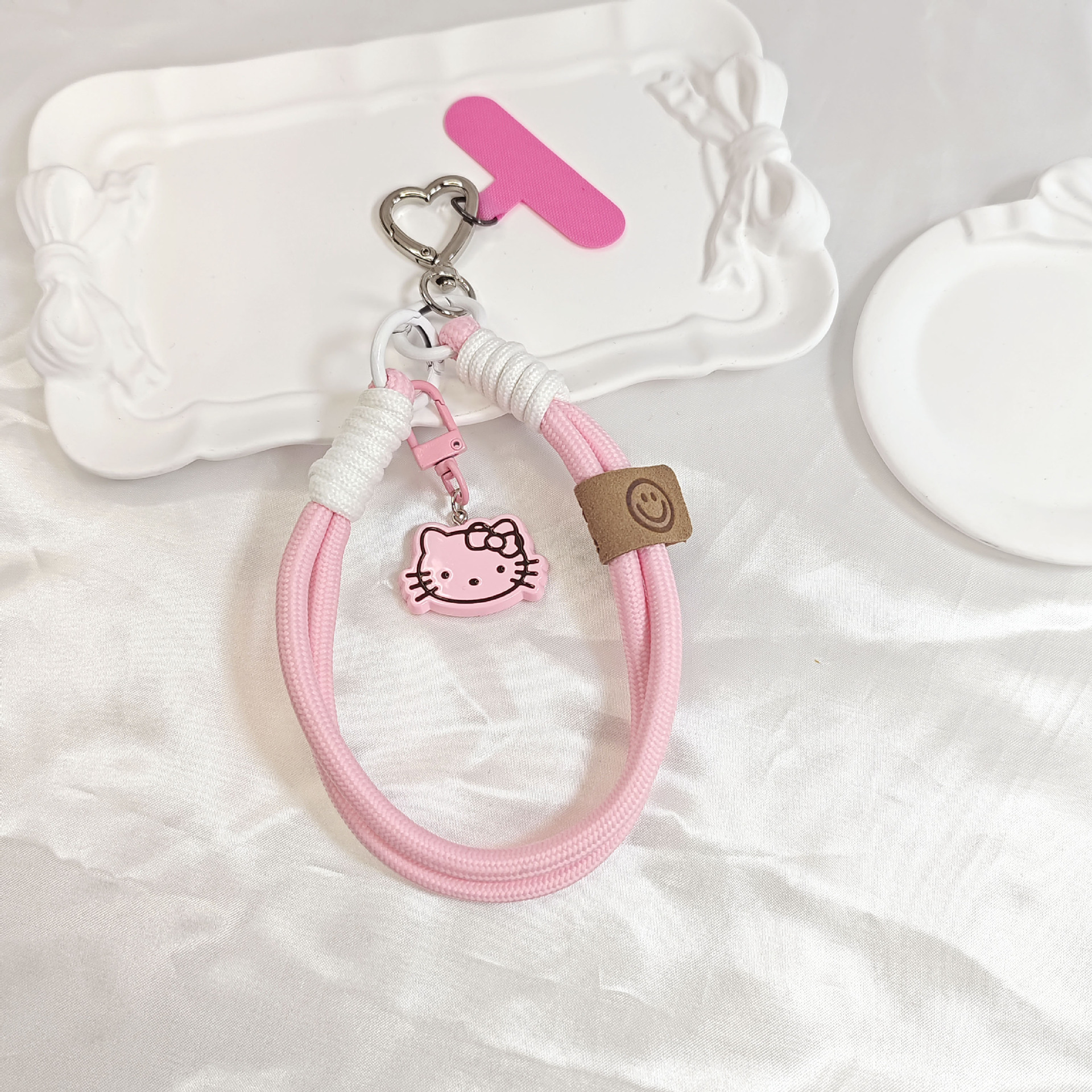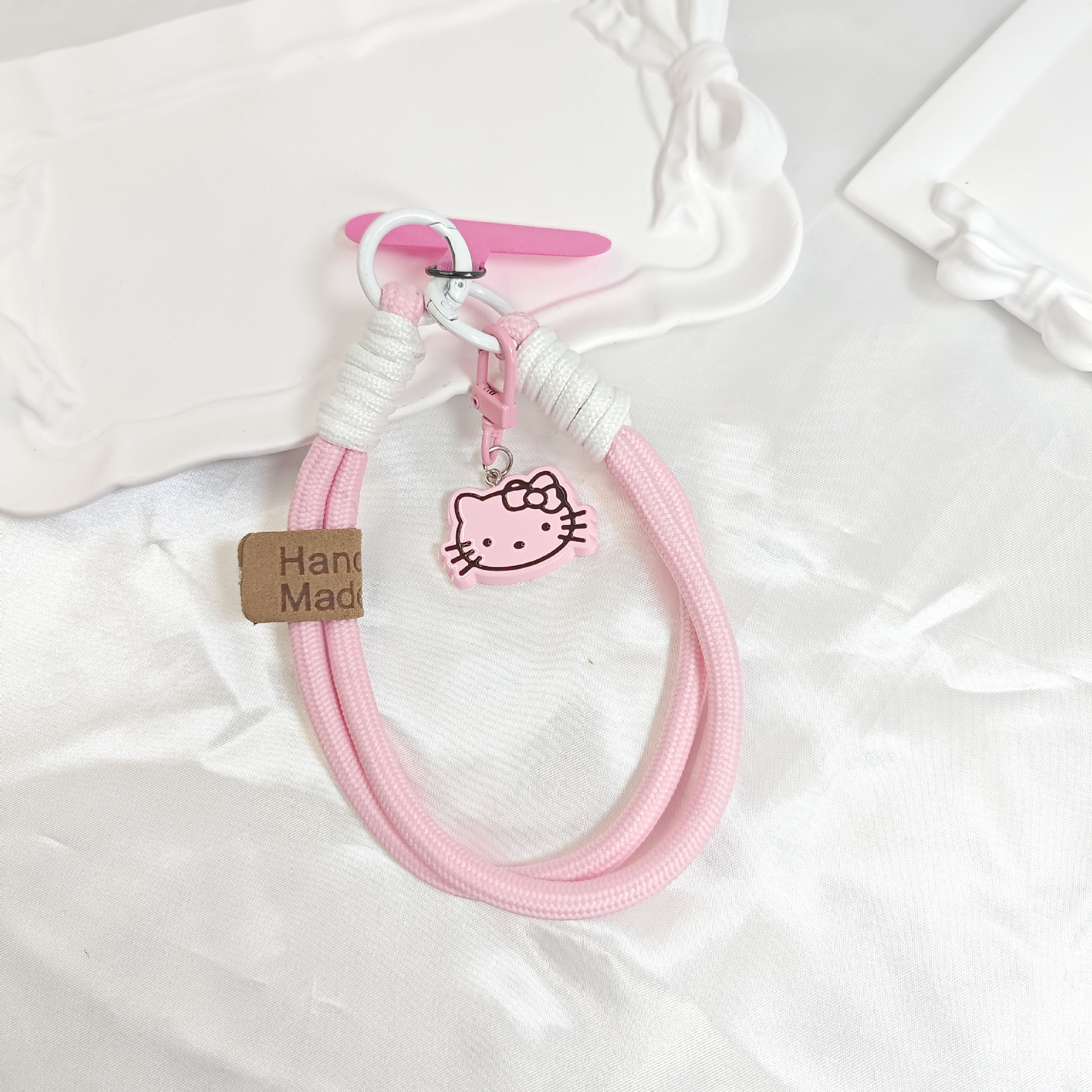 트렌디 한 Ins 스타일 3 차원 핑크 KT 고양이 펜던트 액세서리 휴대 전화 케이스 끈 클립 짧은 짠 휴대 전화 유니버설