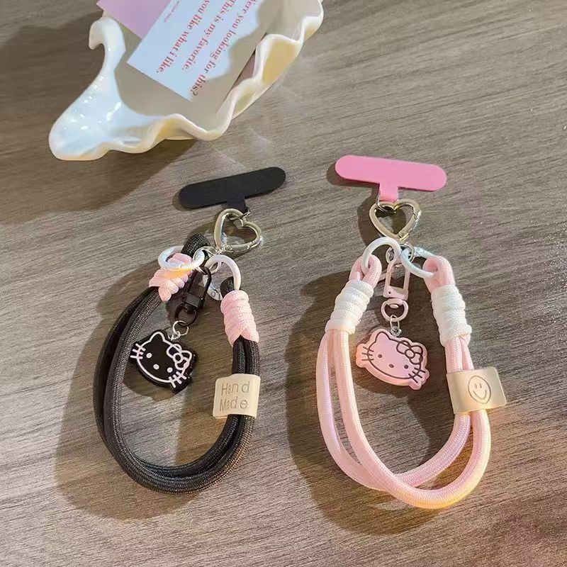 트렌디 한 Ins 스타일 3 차원 핑크 KT 고양이 펜던트 액세서리 휴대 전화 케이스 끈 클립 짧은 짠 휴대 전화 유니버설스토어 가기