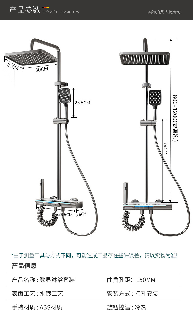 샤워 헤드 세트 건 그레이 샤워 헤드 가정용 항온 부스터 노즐 욕실 레인 샤워