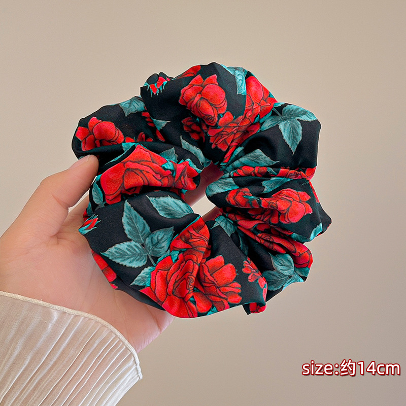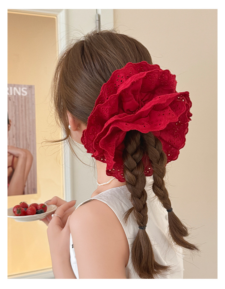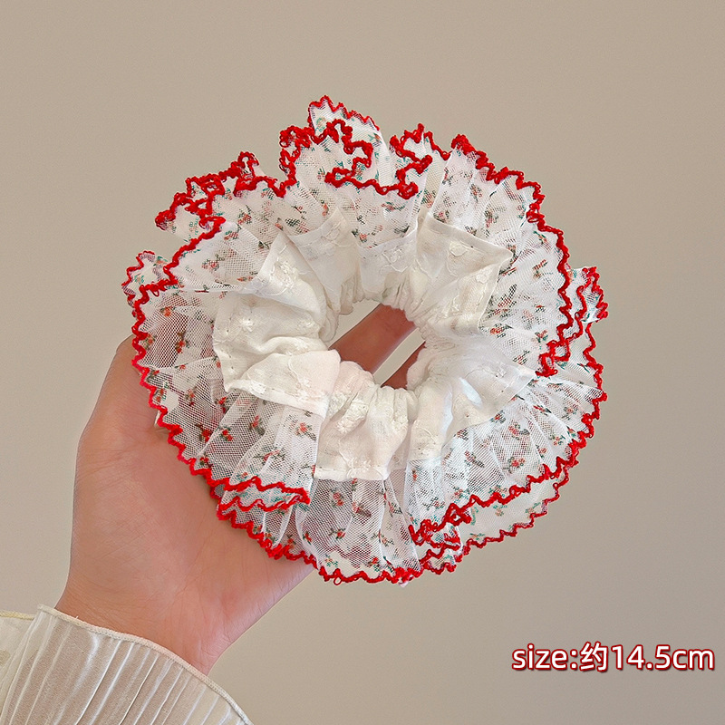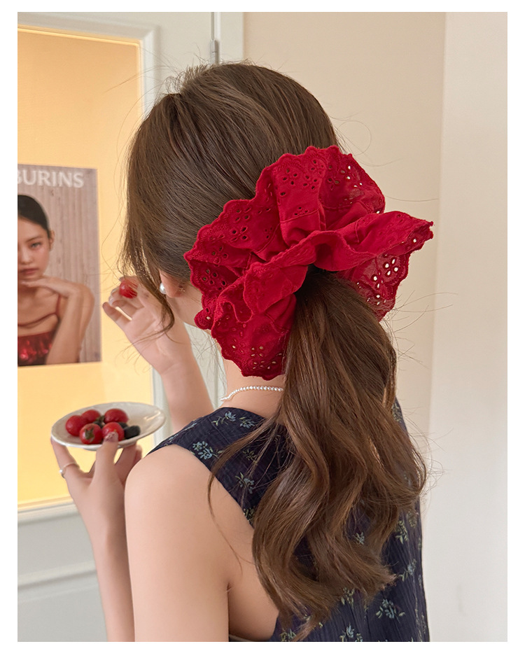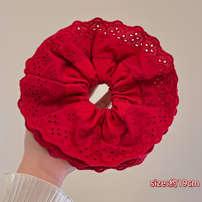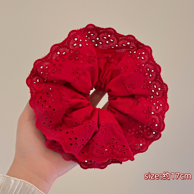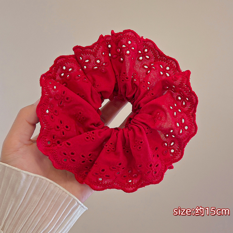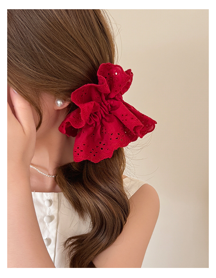 여성용 레드 꽃무늬 레이스 머리끈 컬렉션, 고탄성 머리끈, 포니테일 머리끈 헤어 액세서리