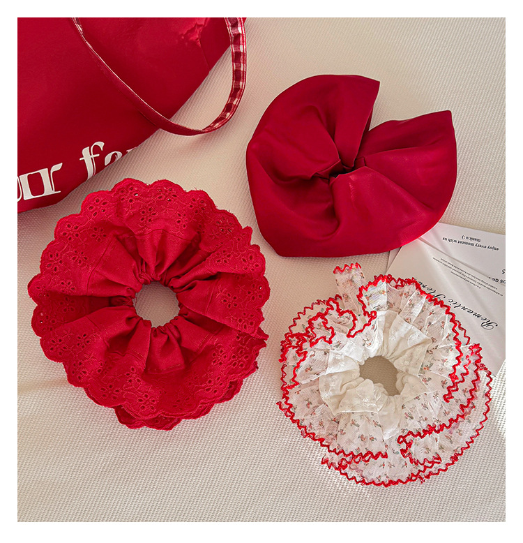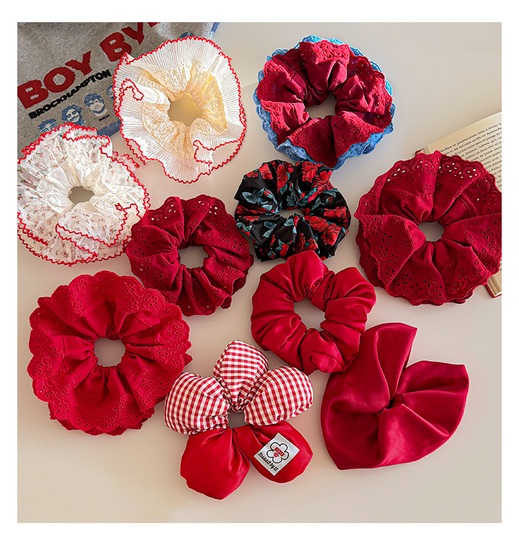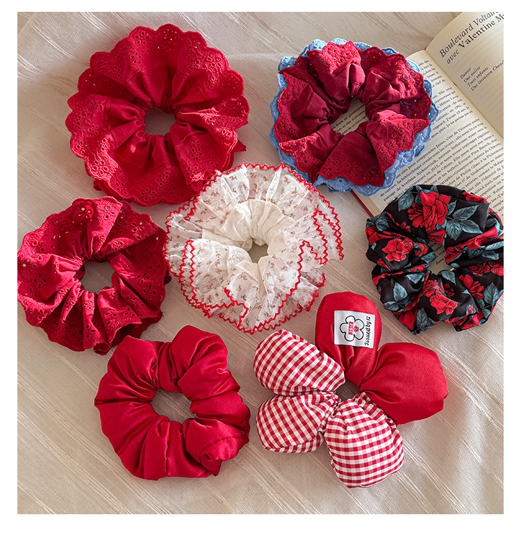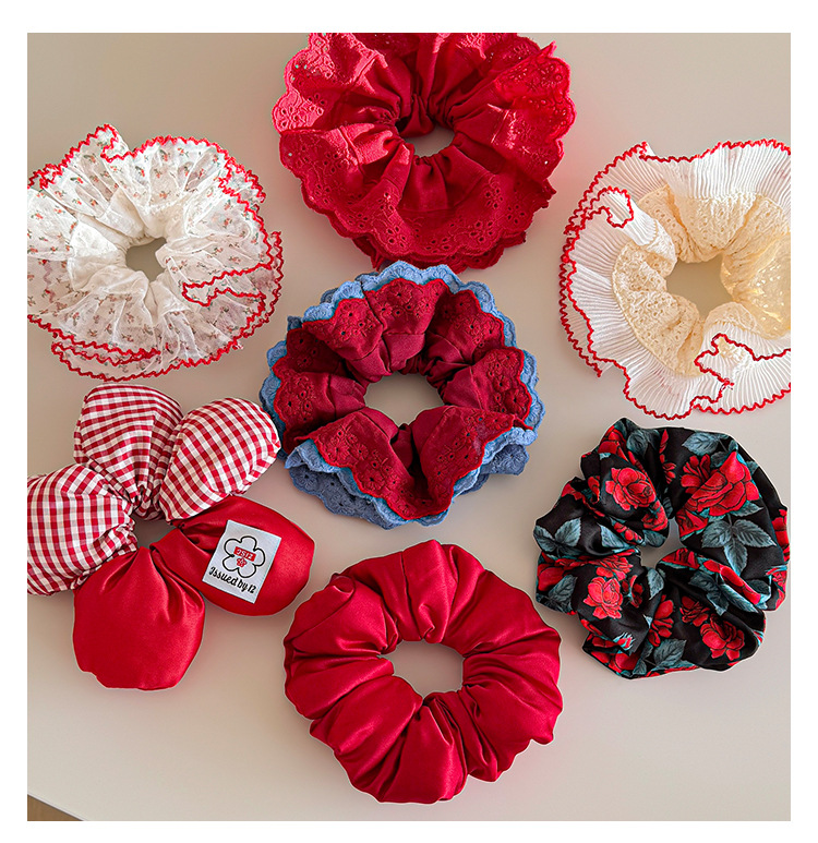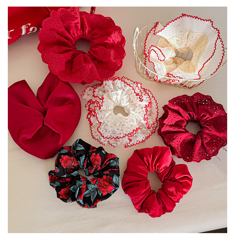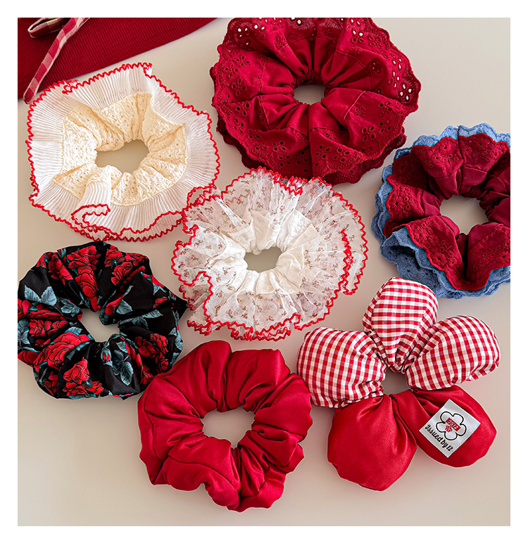 여성용 레드 꽃무늬 레이스 머리끈 컬렉션, 고탄성 머리끈, 포니테일 머리끈 헤어 액세서리스토어 가기