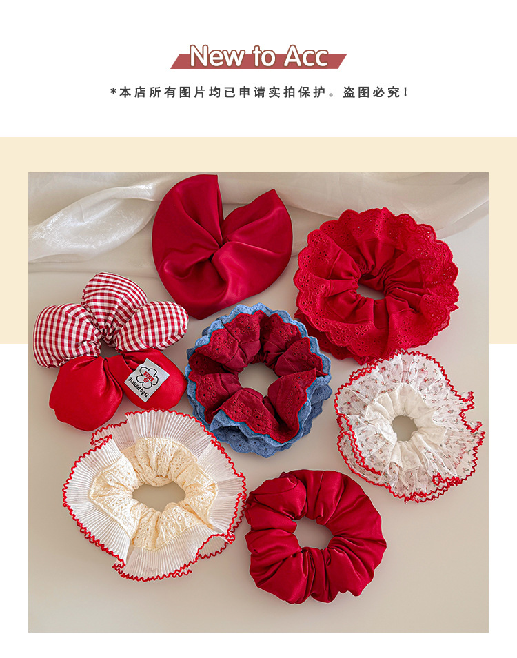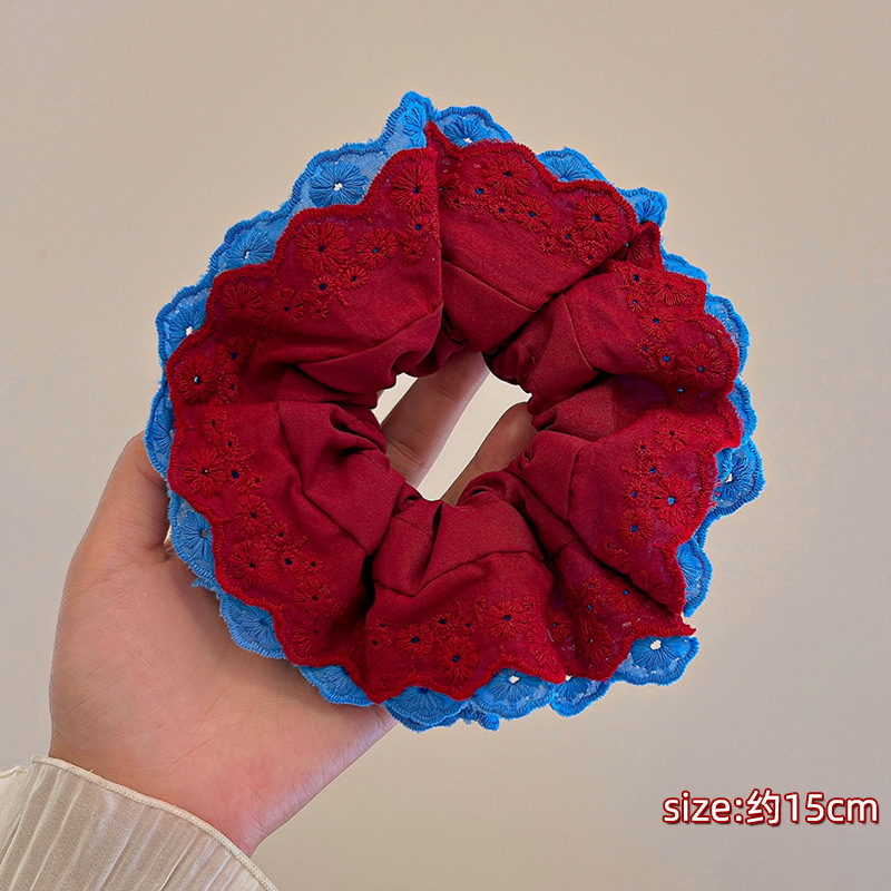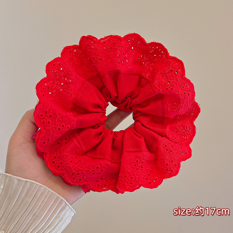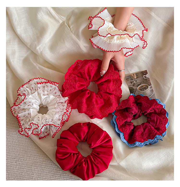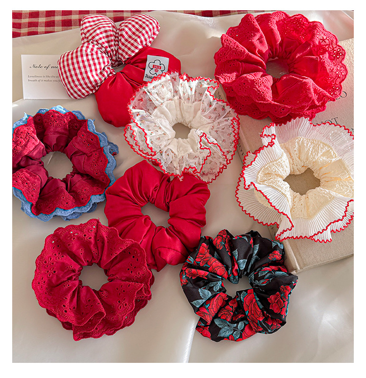 여성용 레드 꽃무늬 레이스 머리끈 컬렉션, 고탄성 머리끈, 포니테일 머리끈 헤어 액세서리스토어 가기