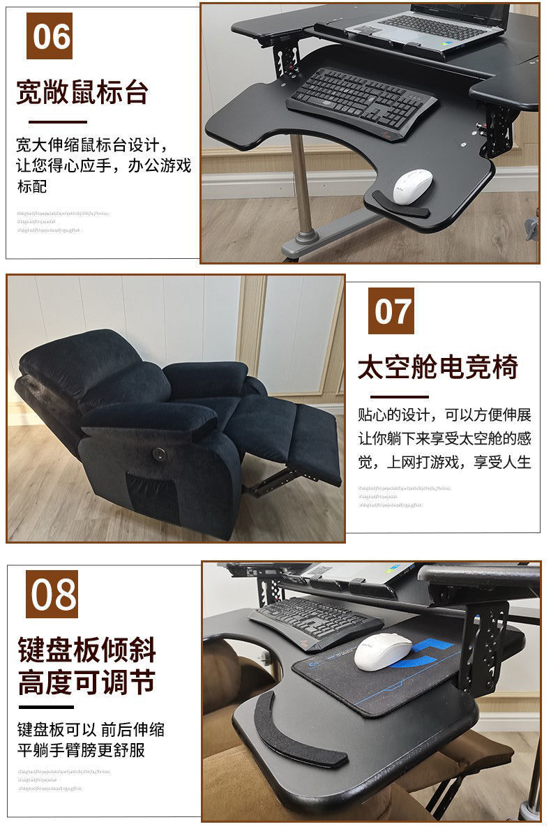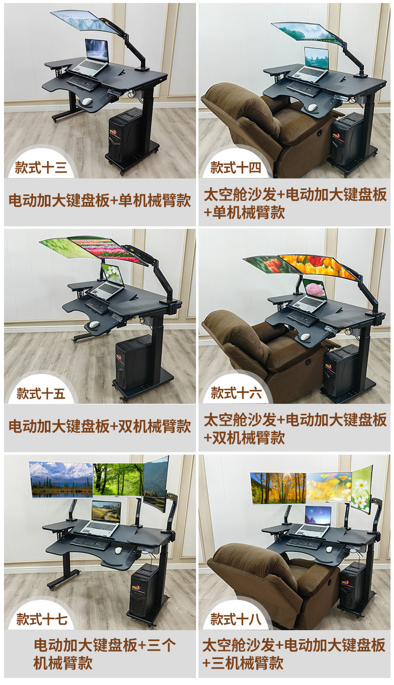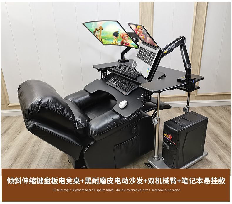 • 5 e스포츠 테이블 + 블랙 가죽 전기 소파 + 듀얼 로봇 팔 + 서스펜션