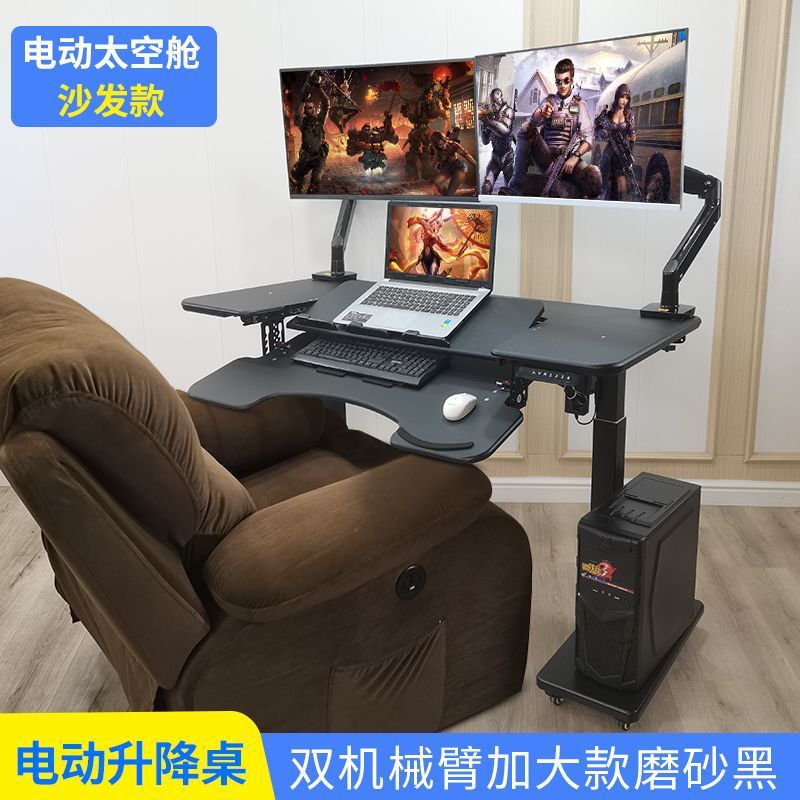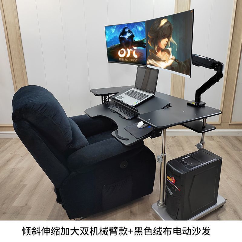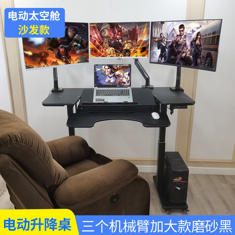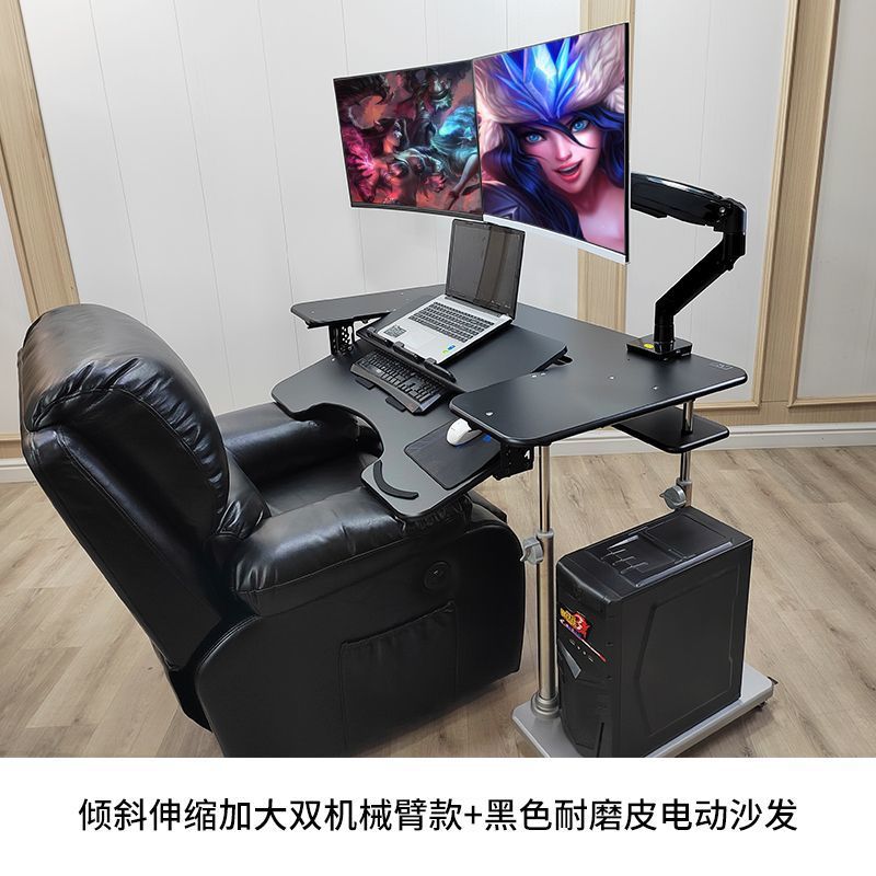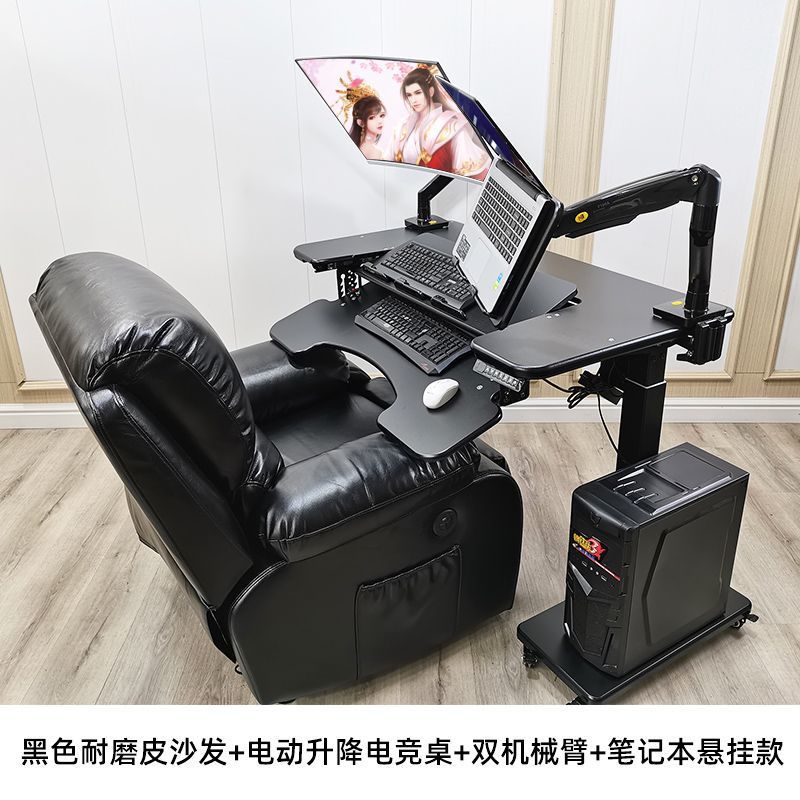 • 31호 전동 리프팅 게이밍 테이블 + 블랙 가죽 소파 + 싱글 암