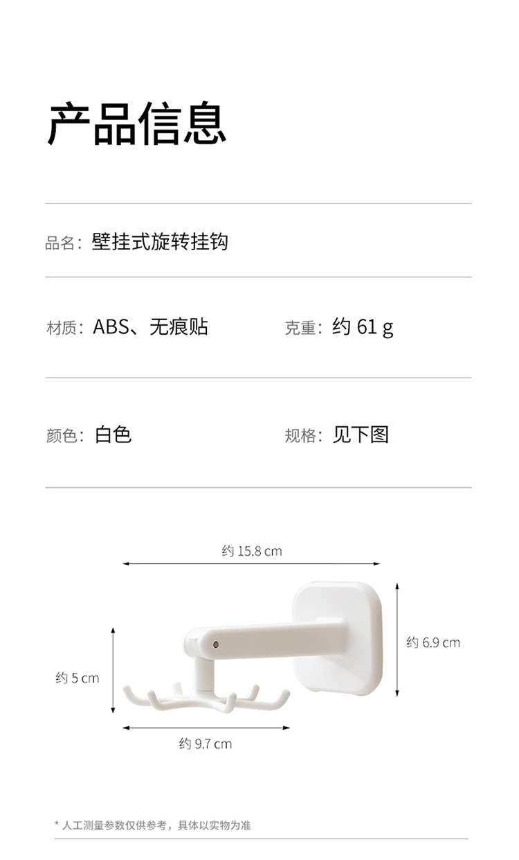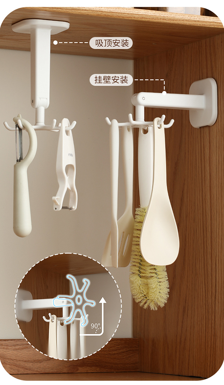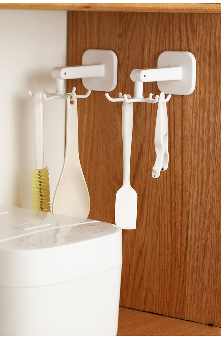 구멍이 없는 벽걸이형 회전 후크, 다기능 주방 주걱, 침실 의류 정리, 흔적 없는 접착 후크