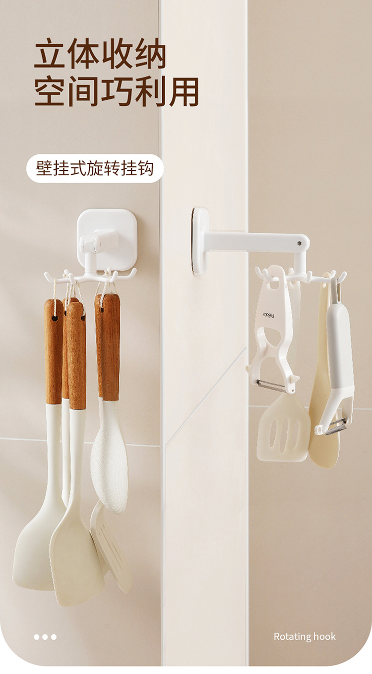 구멍이 없는 벽걸이형 회전 후크, 다기능 주방 주걱, 침실 의류 정리, 흔적 없는 접착 후크스토어 가기