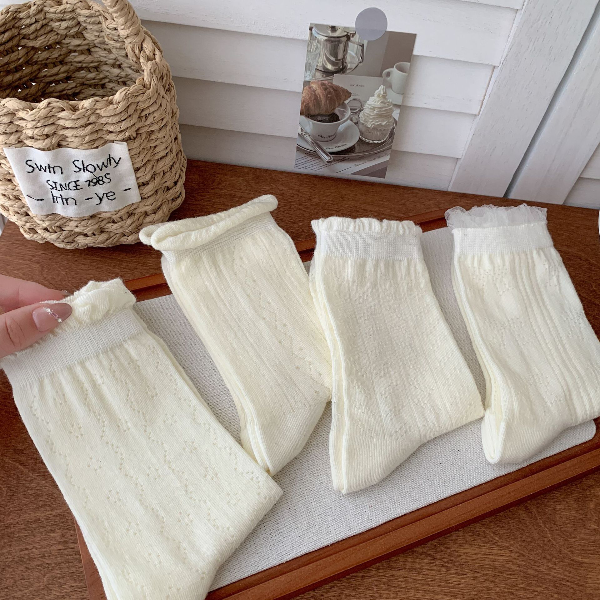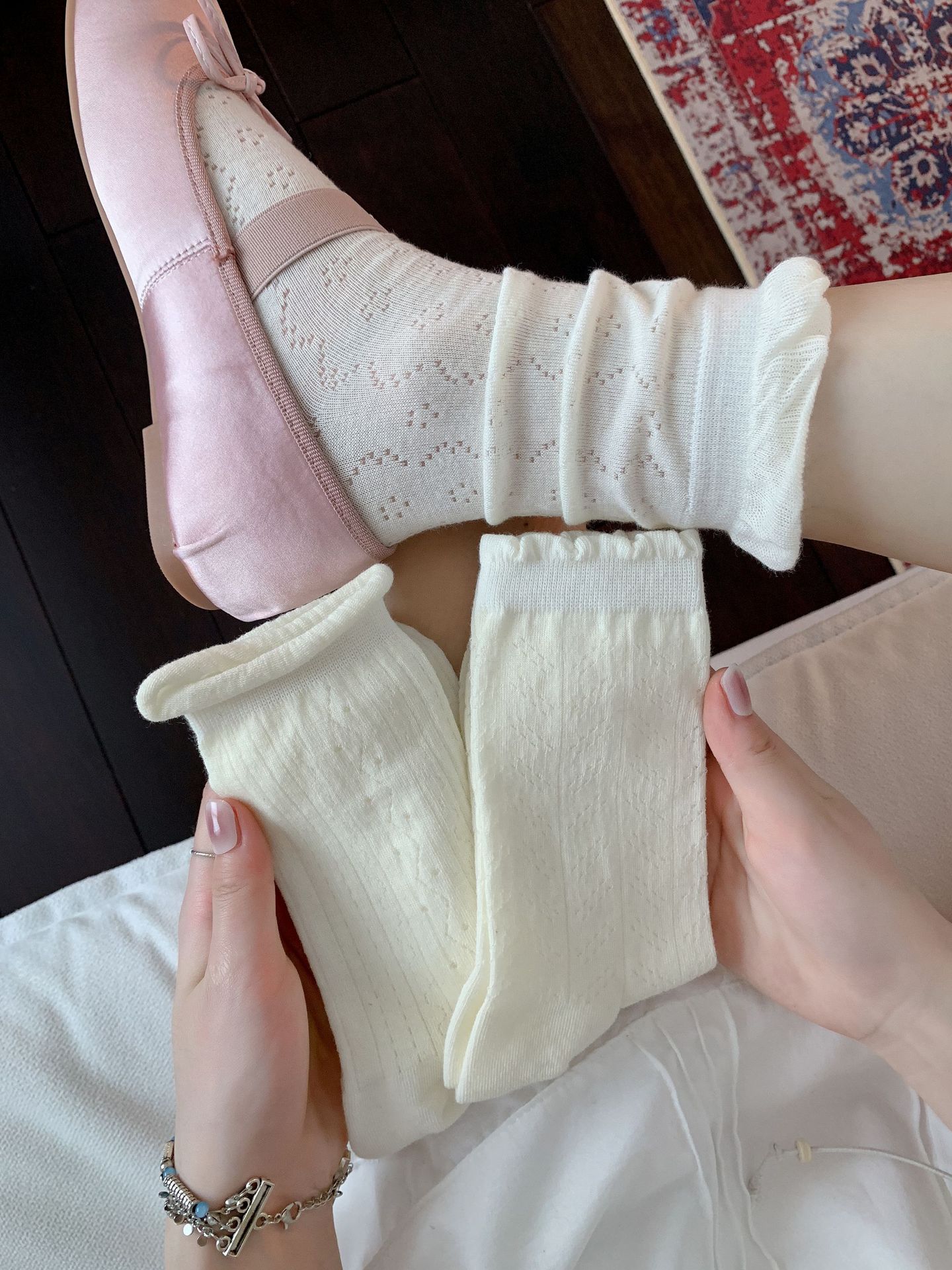 새로운 스타일의 나비 양말 여성 긴 양말 여름 얇은 순수 코튼 jk 일본 소녀 양말 발레 스타일 중간 튜브 양말