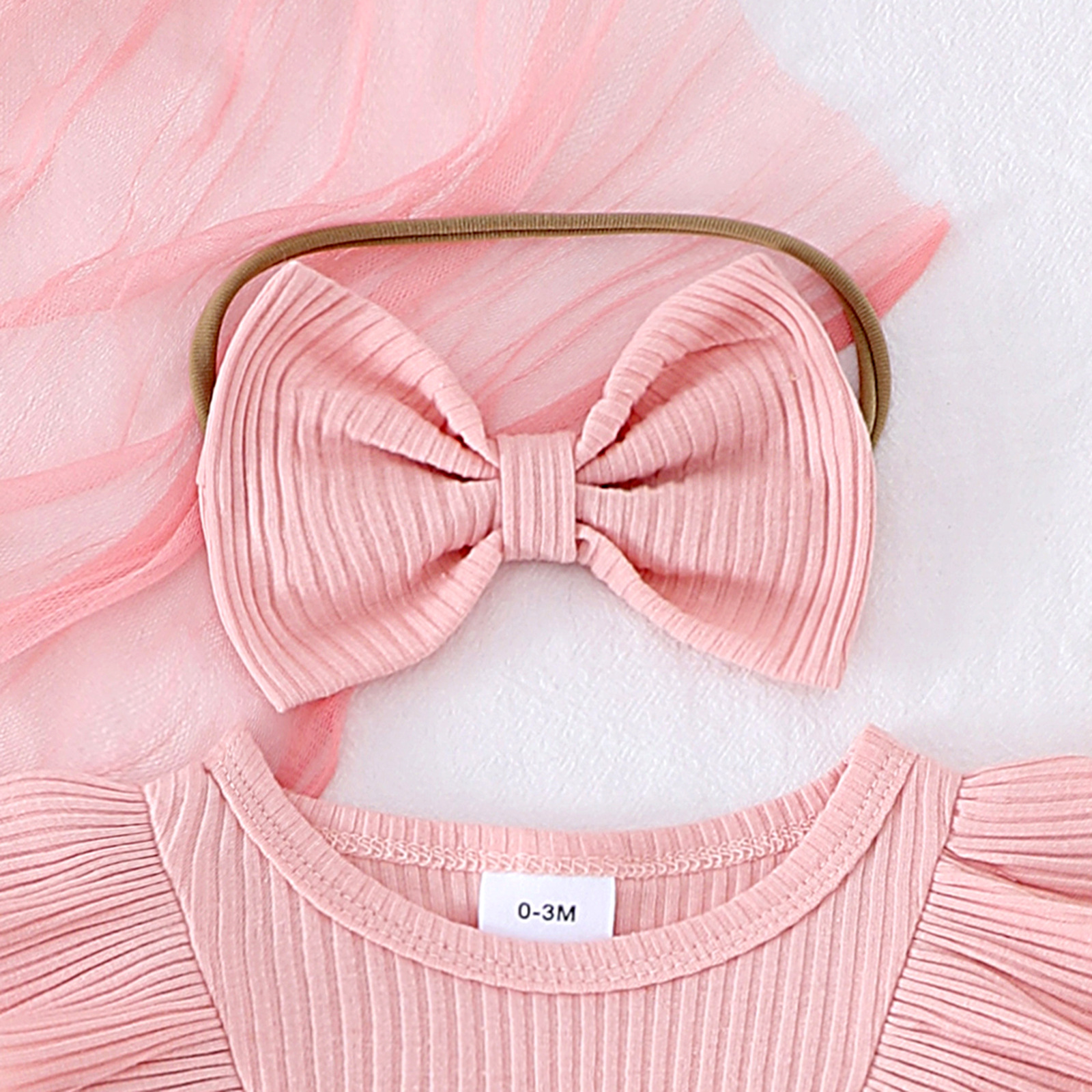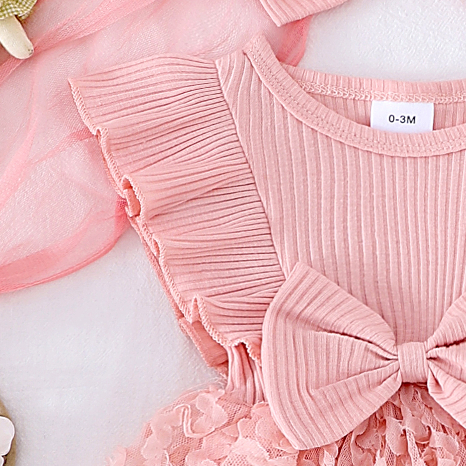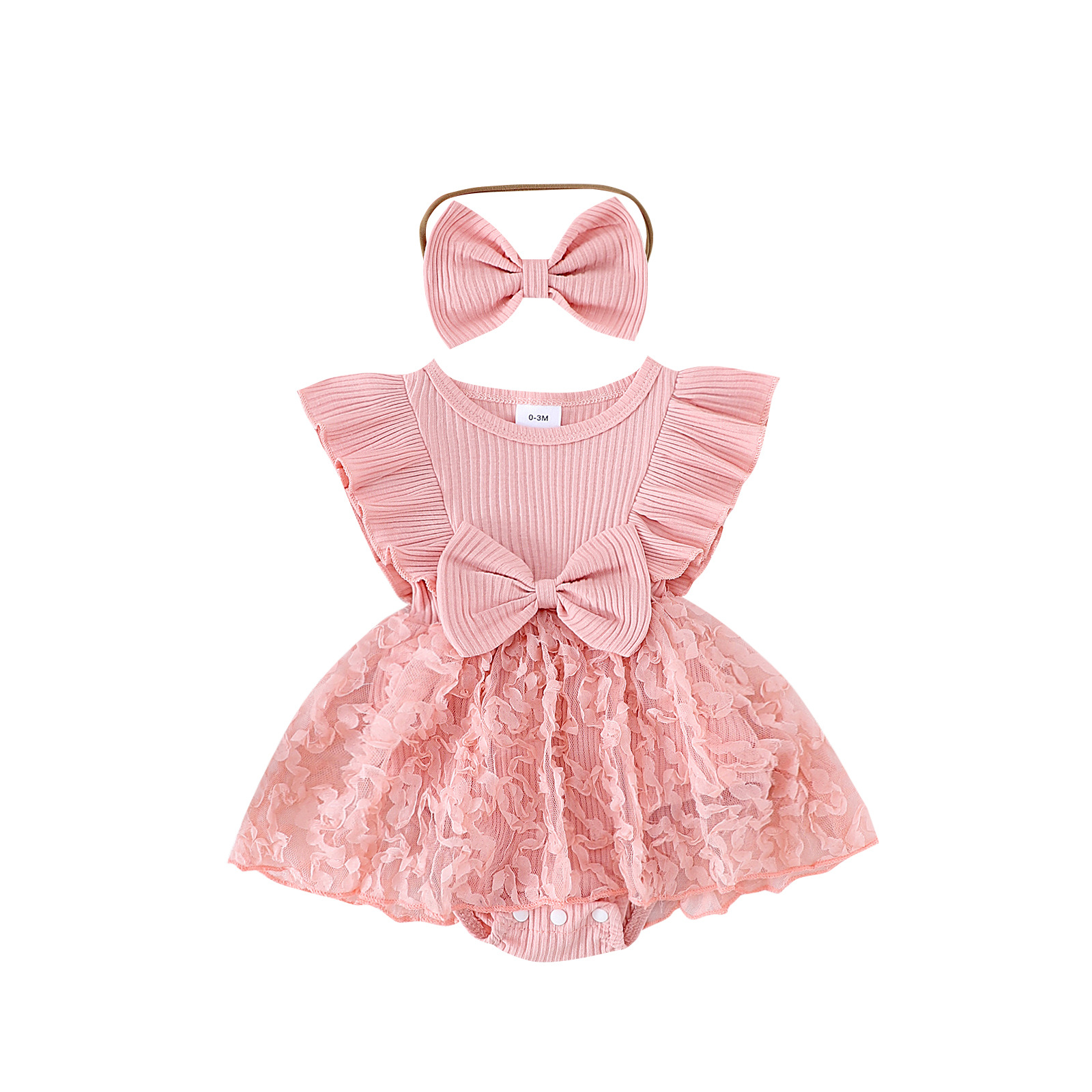 유럽과 미국의 국경 여름 아기 소녀 세트 아기 아기 귀여운 서양식 활 메쉬 비행 소매 원피스 헤드웨어