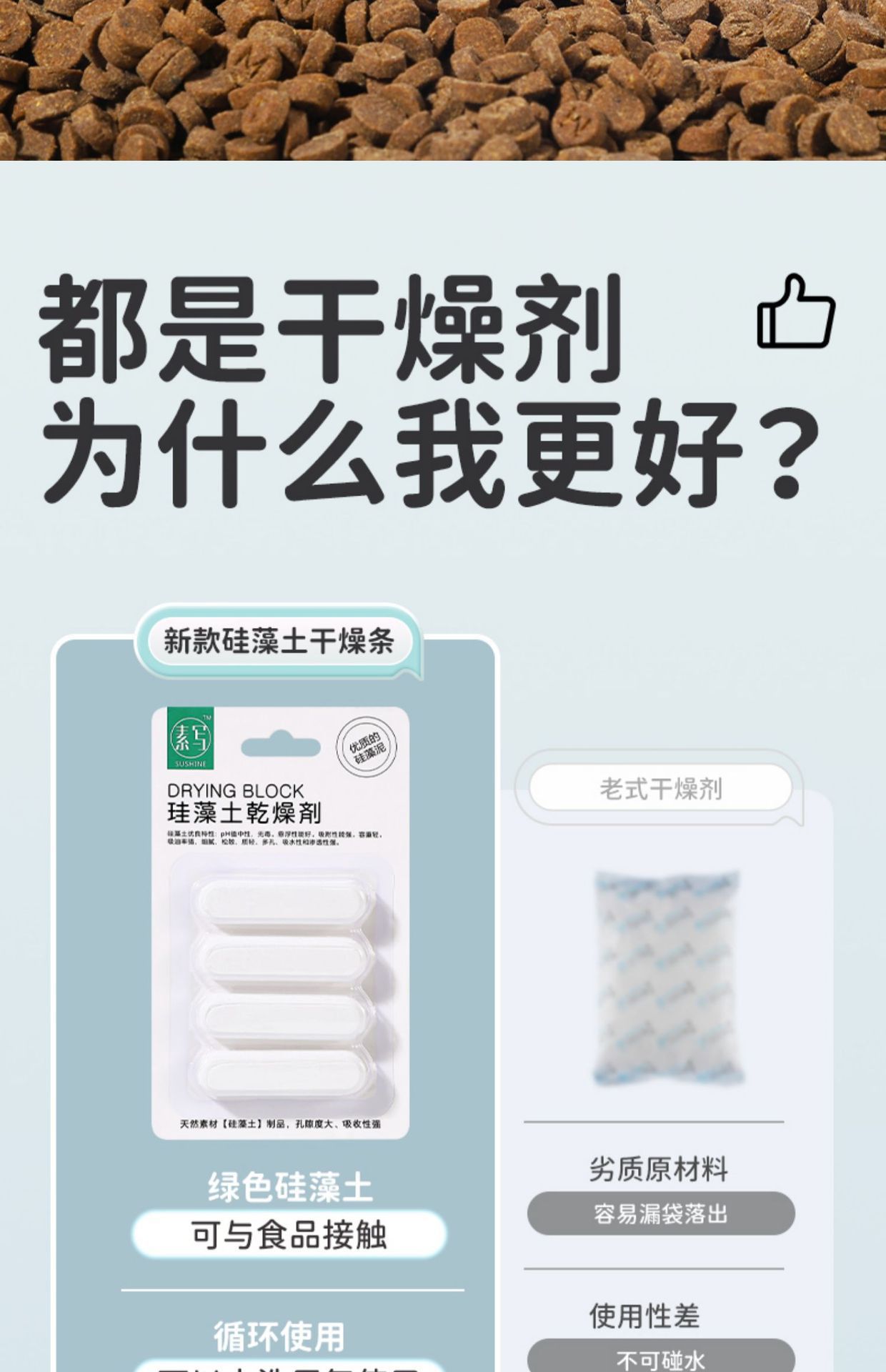 애완동물 사료 건조제, 고양이 사료, 개 사료 보관통, 밀봉 진공통, 규조토 제습 및 방습 건조 스트립