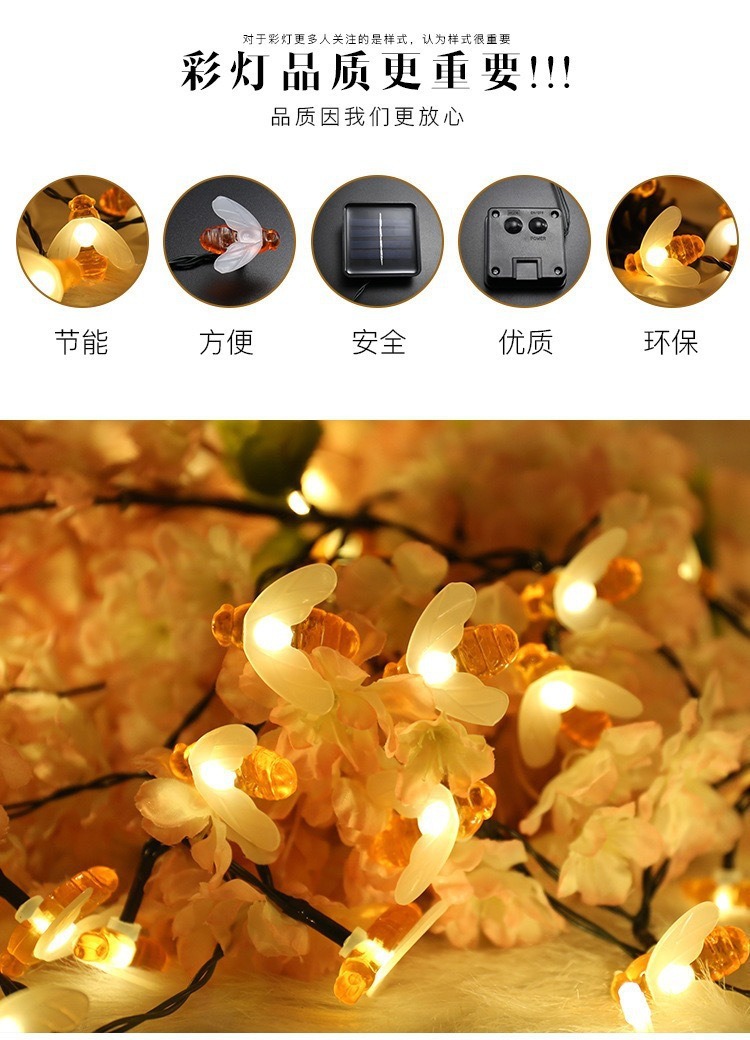 LED 태양 꿀벌 빛 문자열 야외 크리스마스 빛 방수 안뜰 휴일 장식 분위기 빛 문자열스토어 가기