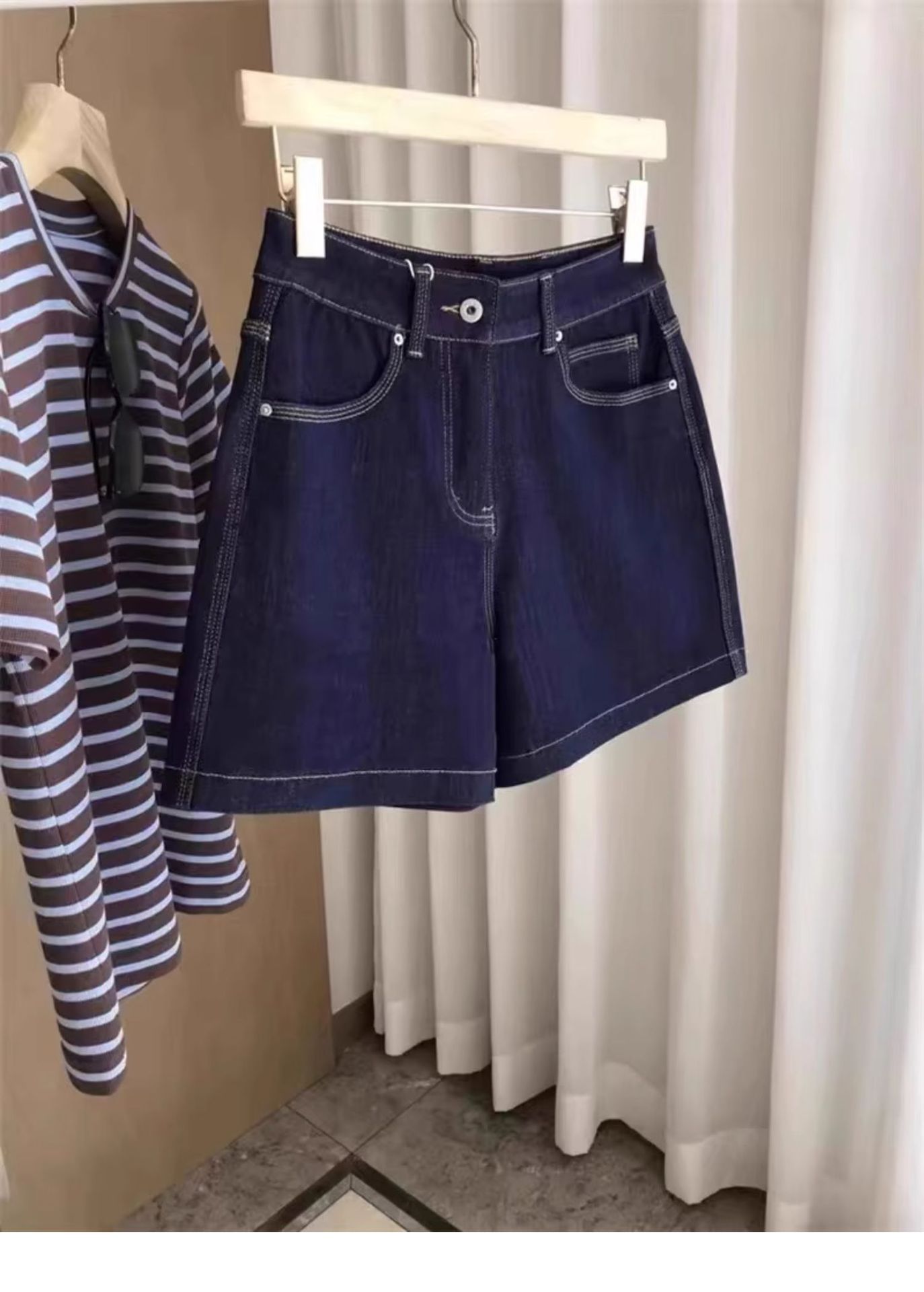 여름용 여성용 플러스 사이즈 레트로 데님 반바지, 얇은, 뚱뚱한 mm, 루즈하고 슬림한 하이 웨이스트 스트레이트 와이드 레그 A 라인 핫팬츠스토어 가기