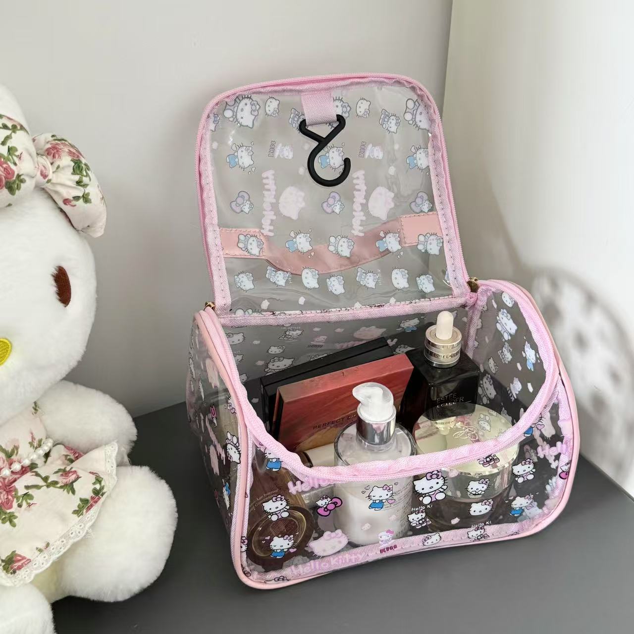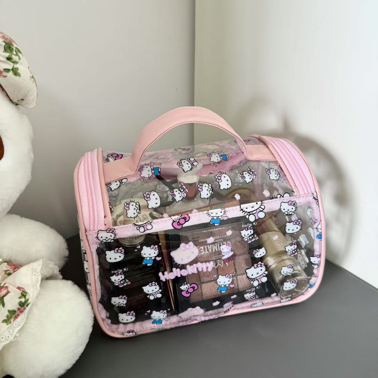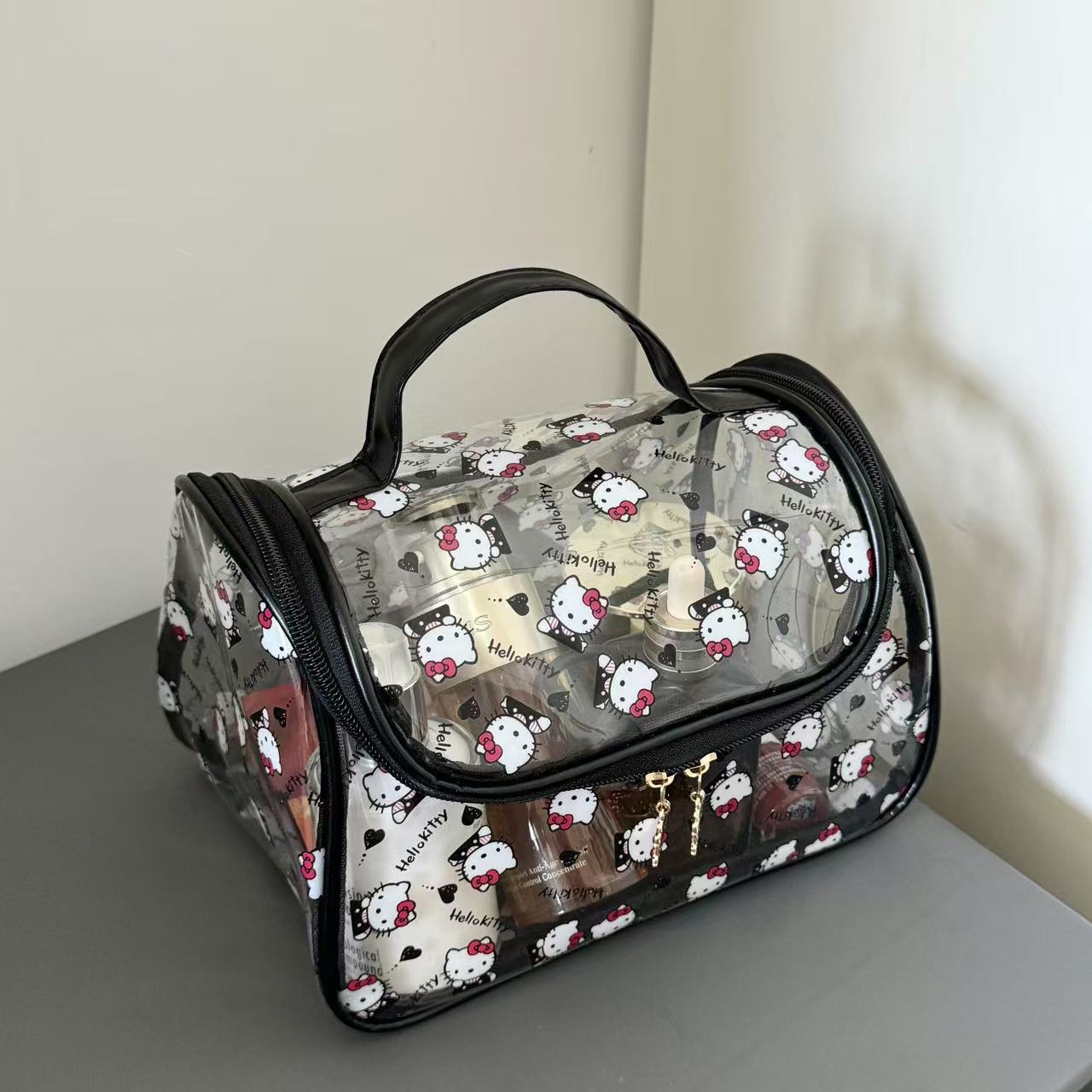 귀여운 만화 투명 헬로 키티 화장품 가방 KT 고양이 대용량 소녀의 휴대용 보관 여행 핸드백스토어 가기