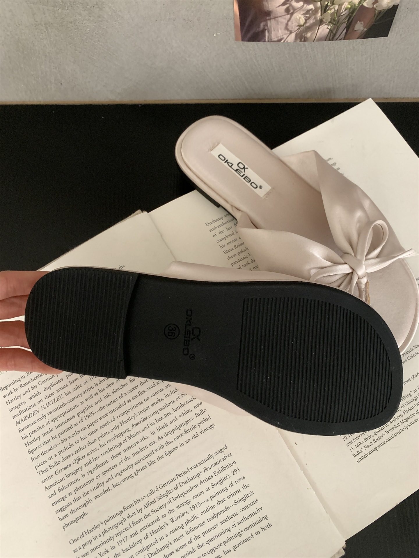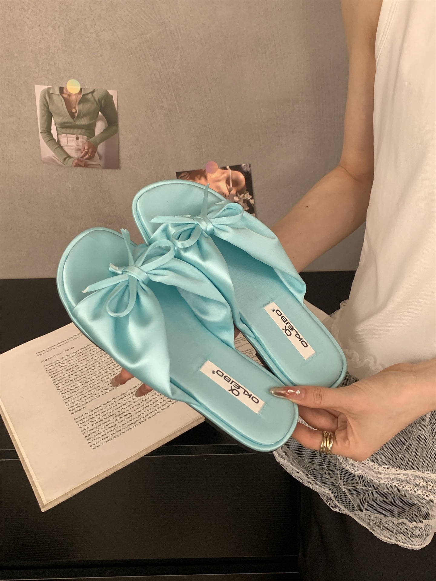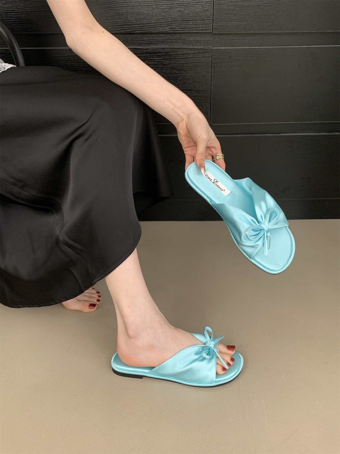 여성을위한 프랑스 스타일 플랫 샌들 2025 여름 새로운 요정 스타일 보우 슬리퍼 스커트와 샌들스토어 가기