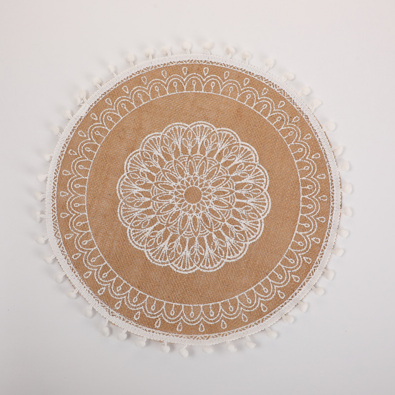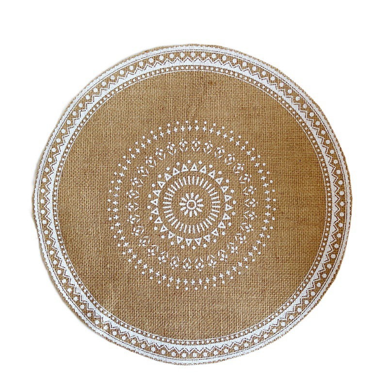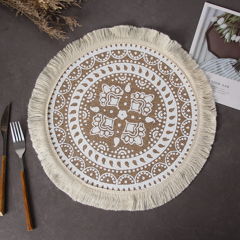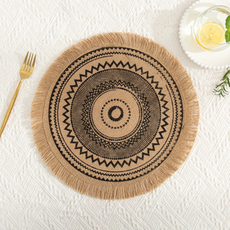 북유럽 간단한 수제 짠 접시 매트 매트 빈티지 코튼 및 리넨 레스토랑 장식 매트 플레이트 매트 라운드 황마 플레이스 매트