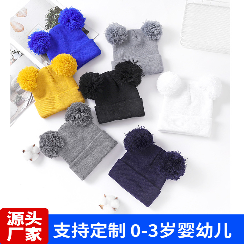 빨간색 어린이 모피 볼 니트 모자 0-3 세 아기 모자 신생아 모직 모자 가을, 겨울 어린이 모피 볼 니트 모자스토어 가기