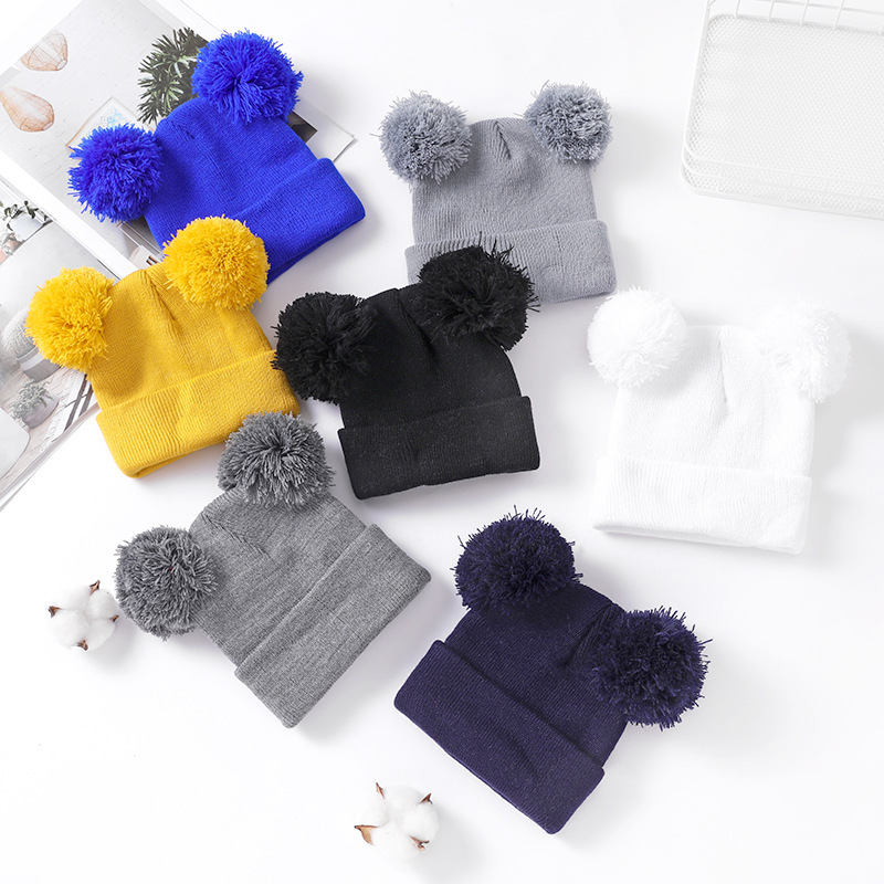 빨간색 어린이 모피 볼 니트 모자 0-3 세 아기 모자 신생아 모직 모자 가을, 겨울 어린이 모피 볼 니트 모자