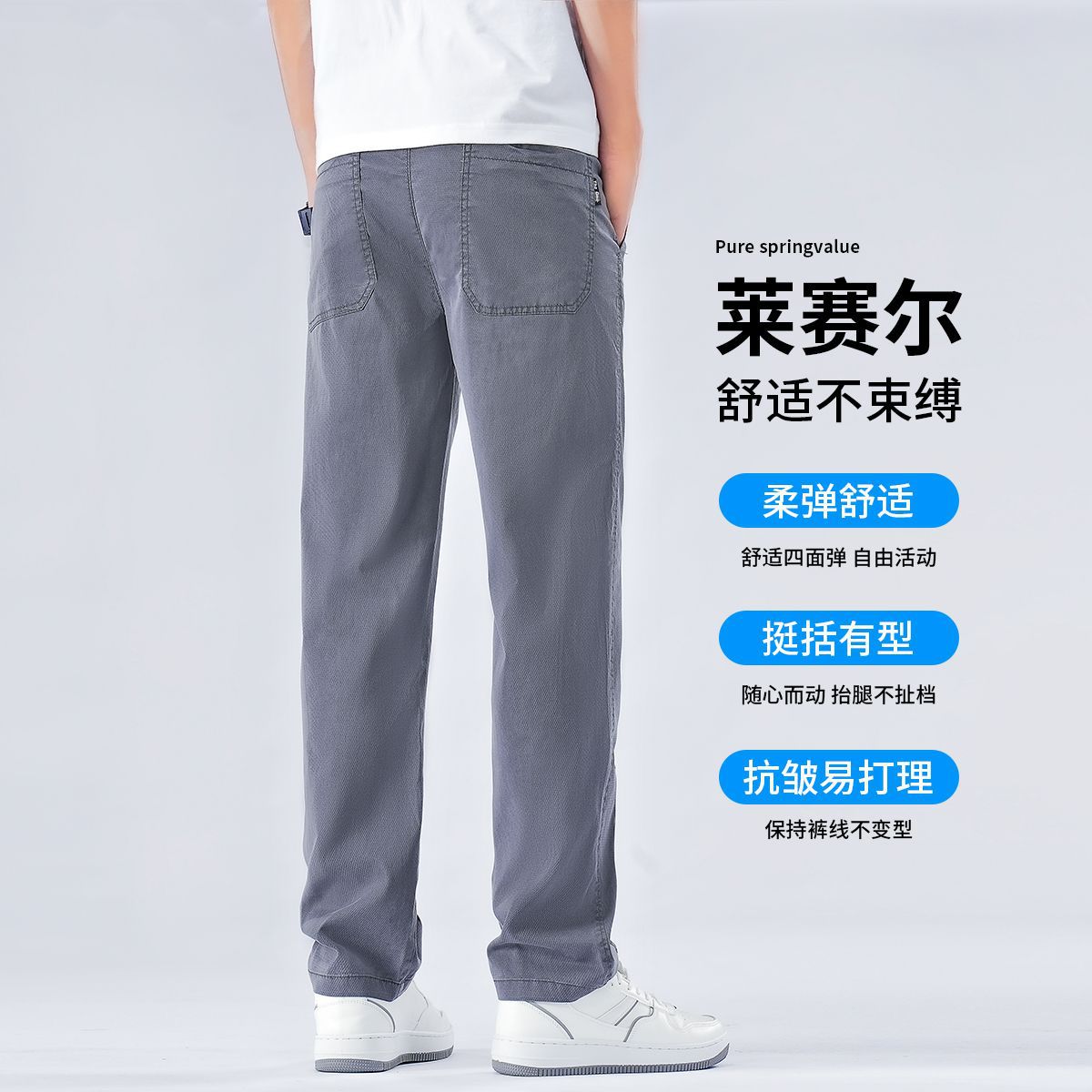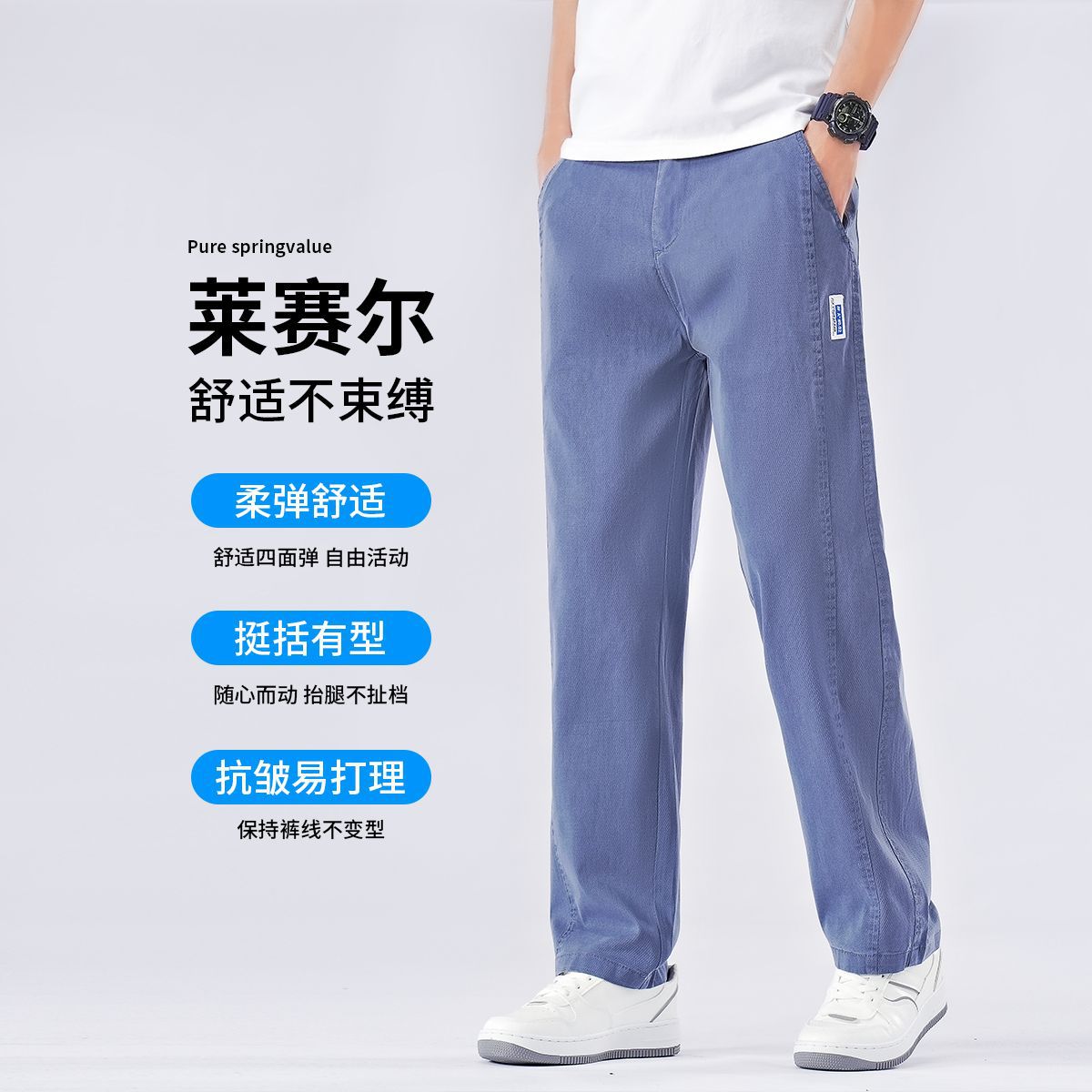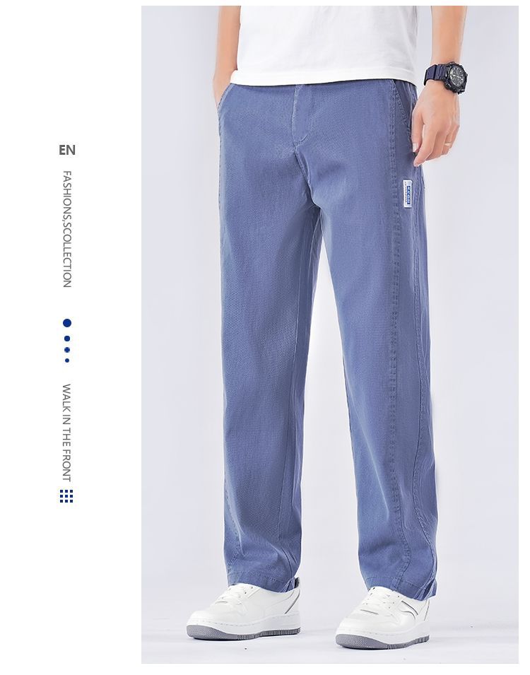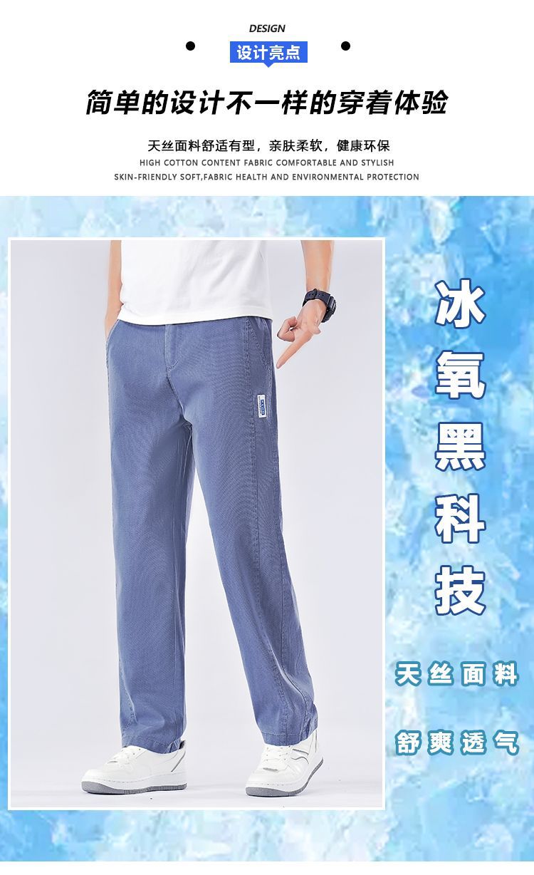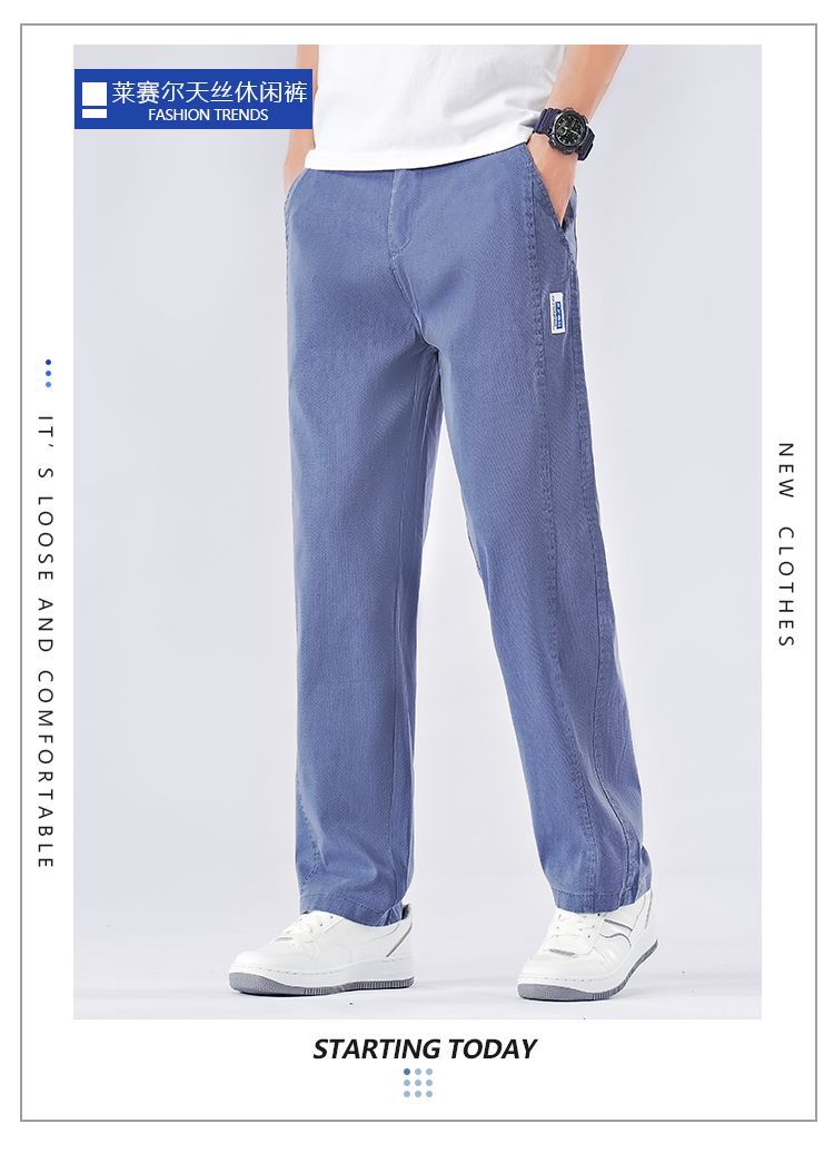 남성용 여름 얇은 리오셀 텐셀 청바지 봄, 가을 대형 와이드 레그 루즈 스트레이트 캐주얼 롱 팬츠스토어 가기