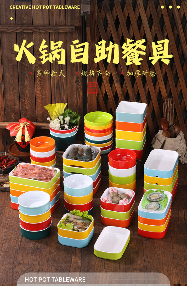 한 사람이 작은 냄비 색 요리를 먹는다 해산물 시장 냄비 긴 사각형 접시 물 포장 수프 KTV 사각형 요리 쌓을 수 있습니다스토어 가기