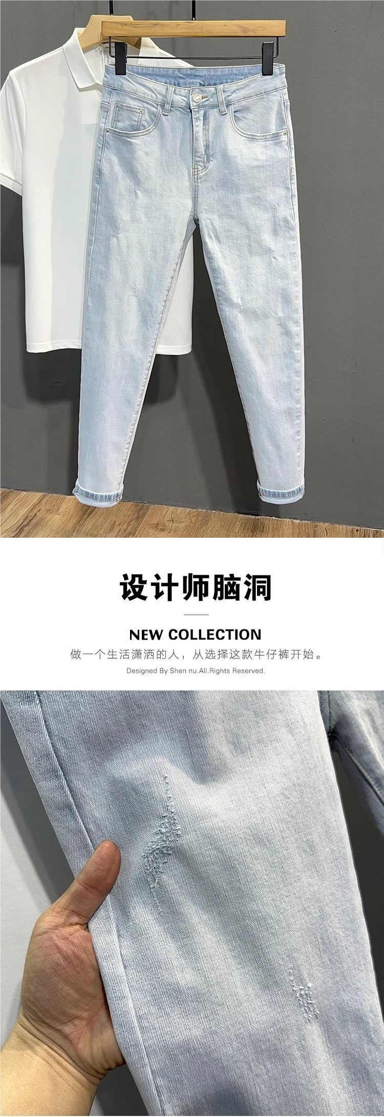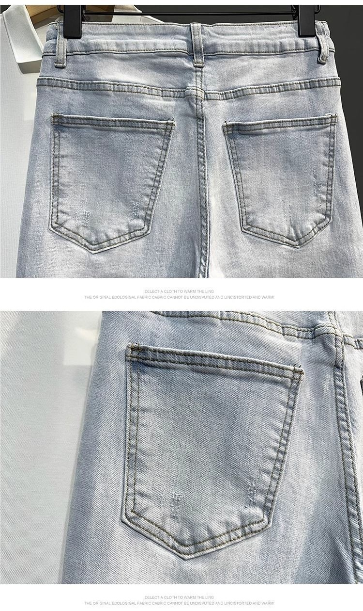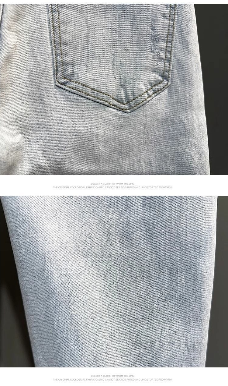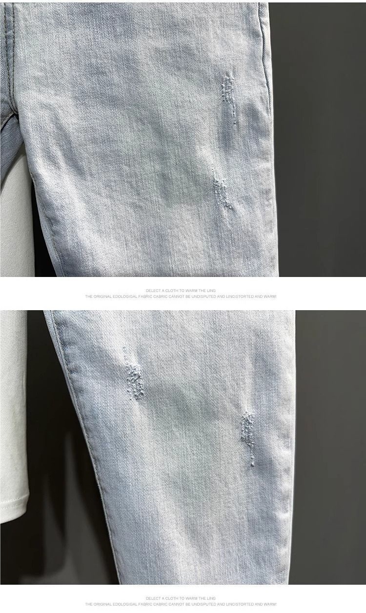 남성용 여름 얇은 워싱 라이트 블루 9부 청바지, 트렌디한 브랜드, 다재다능하고 멋진 소년용 9부 바지, 한국어 버전스토어 가기
