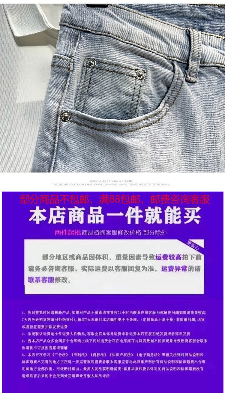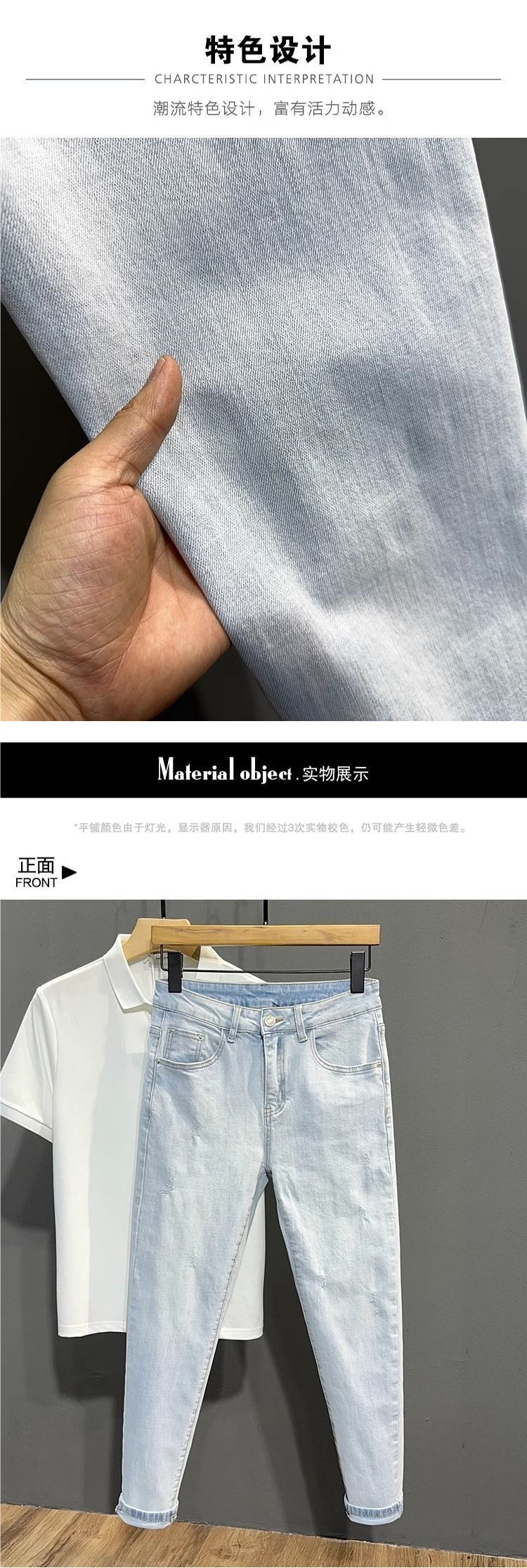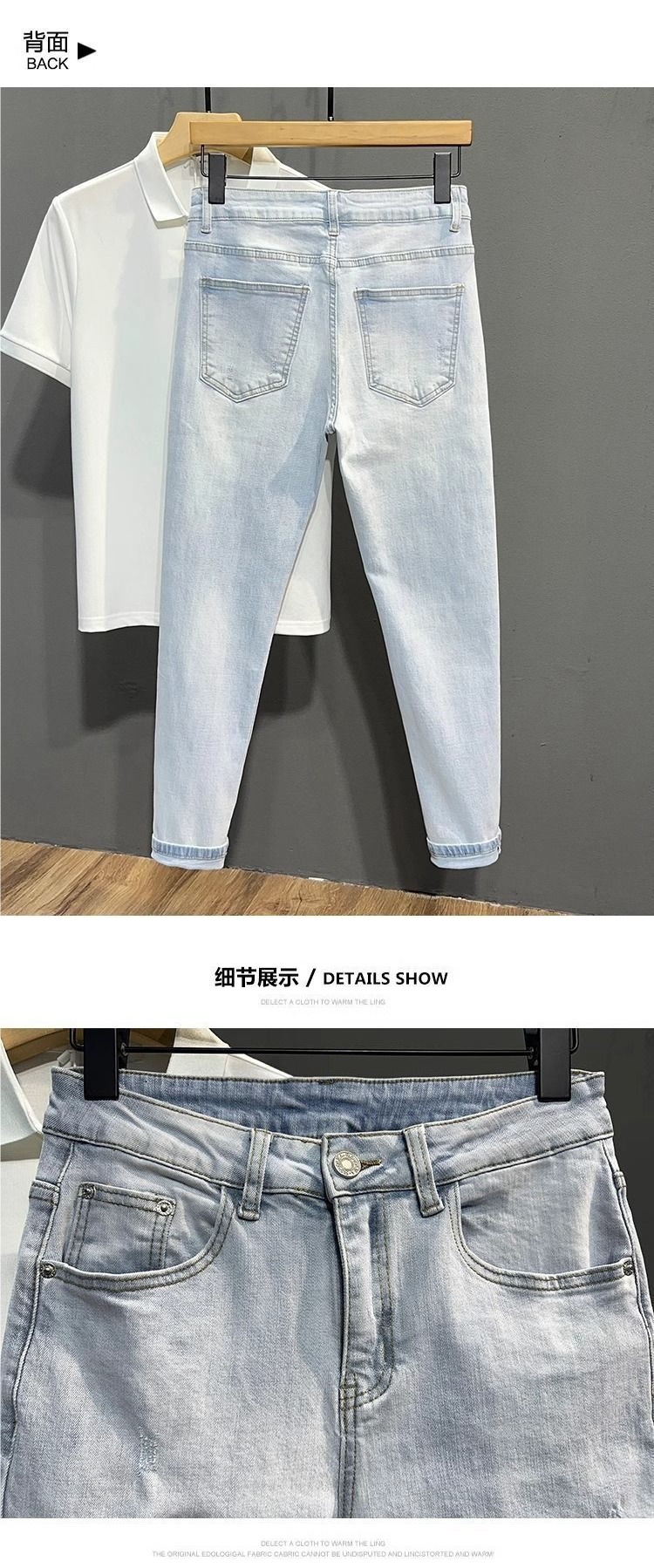 남성용 여름 얇은 워싱 라이트 블루 9부 청바지, 트렌디한 브랜드, 다재다능하고 멋진 소년용 9부 바지, 한국어 버전스토어 가기