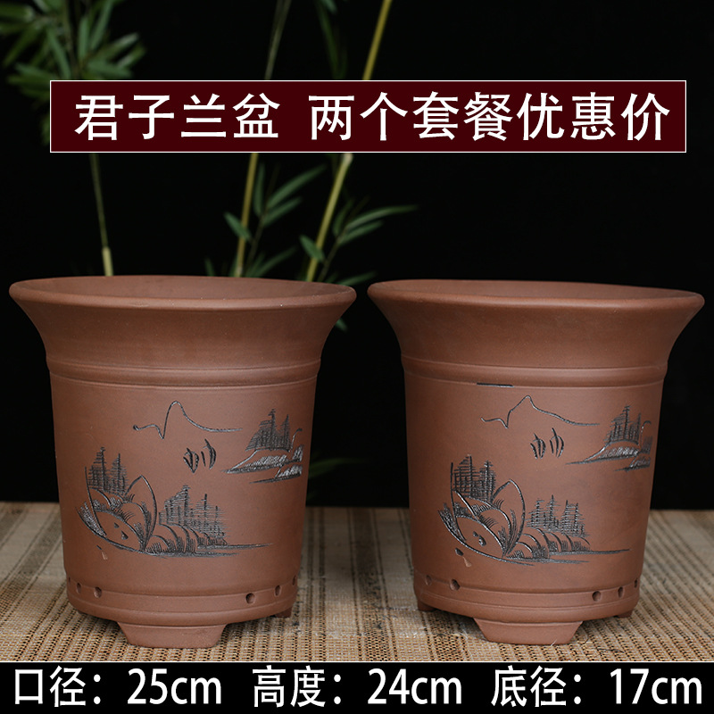 Yixing 보라색 모래 난초 화분, 난초 특수 화분, Clivia, 나비 난초, 난초 화분, 세라믹 대형 특별 가격