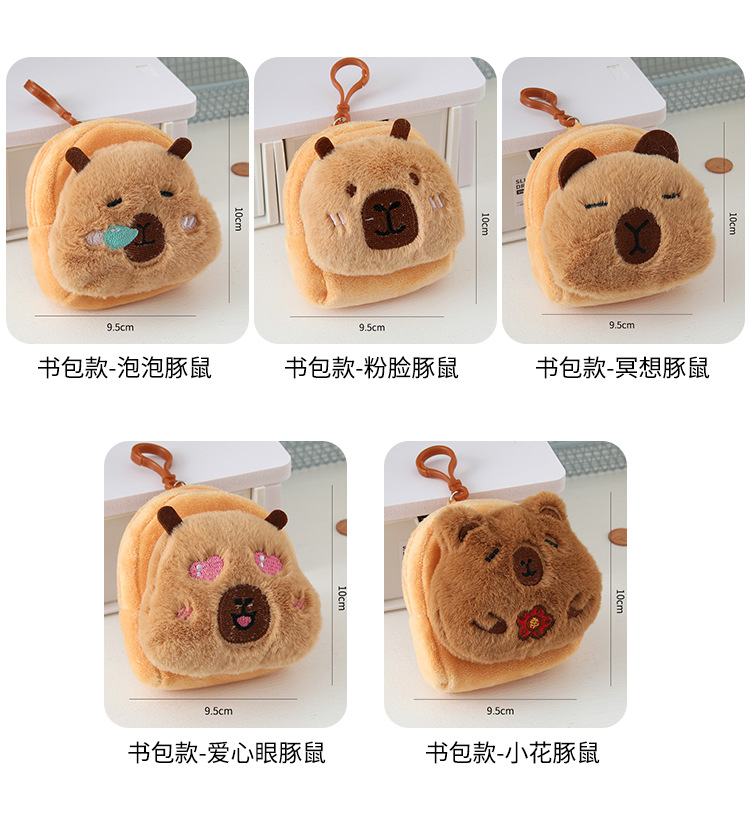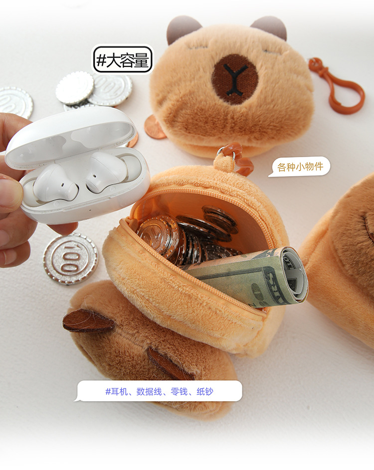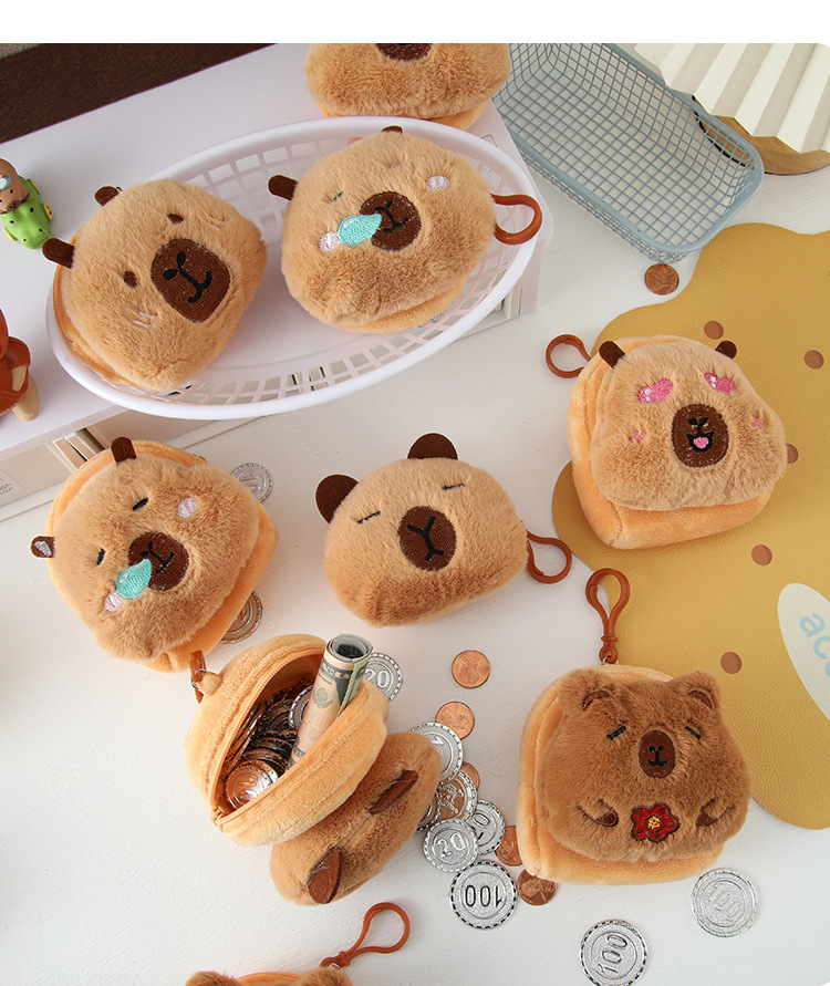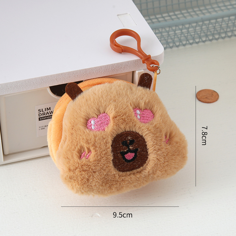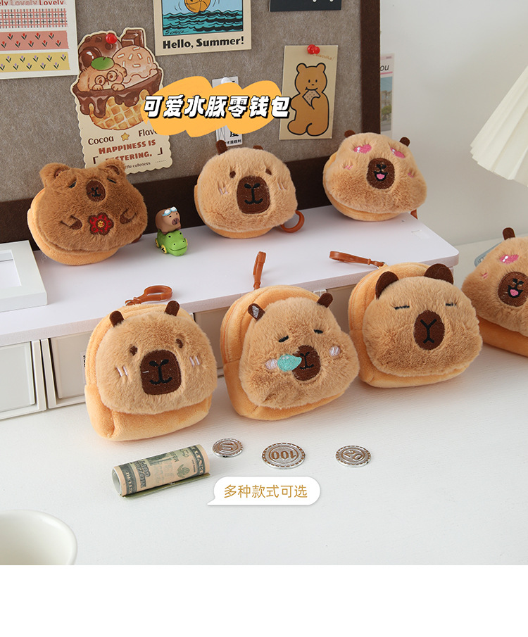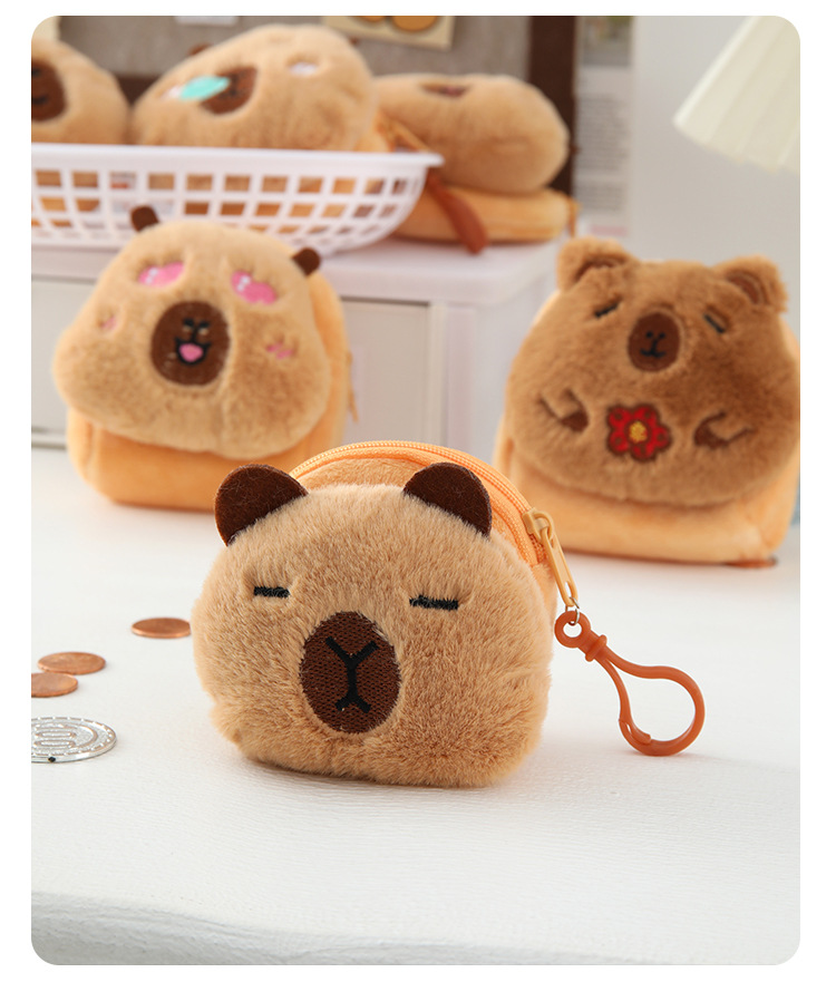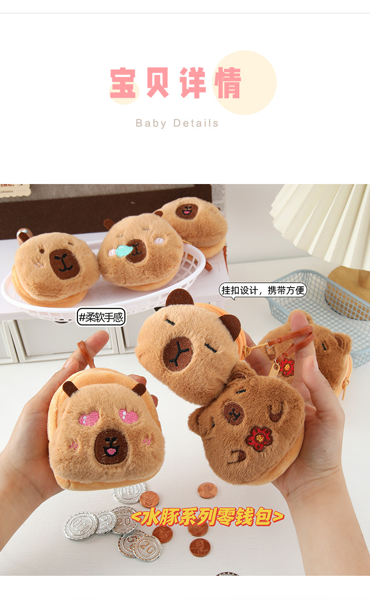 카피발라 동전 지갑 귀여운 수납 가방 어린이 학교용 만화 캐릭터 플러시 동전 가방 인형 미니 지갑