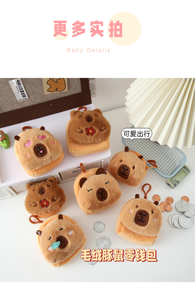 카피발라 동전 지갑 귀여운 수납 가방 어린이 학교용 만화 캐릭터 플러시 동전 가방 인형 미니 지갑스토어 가기