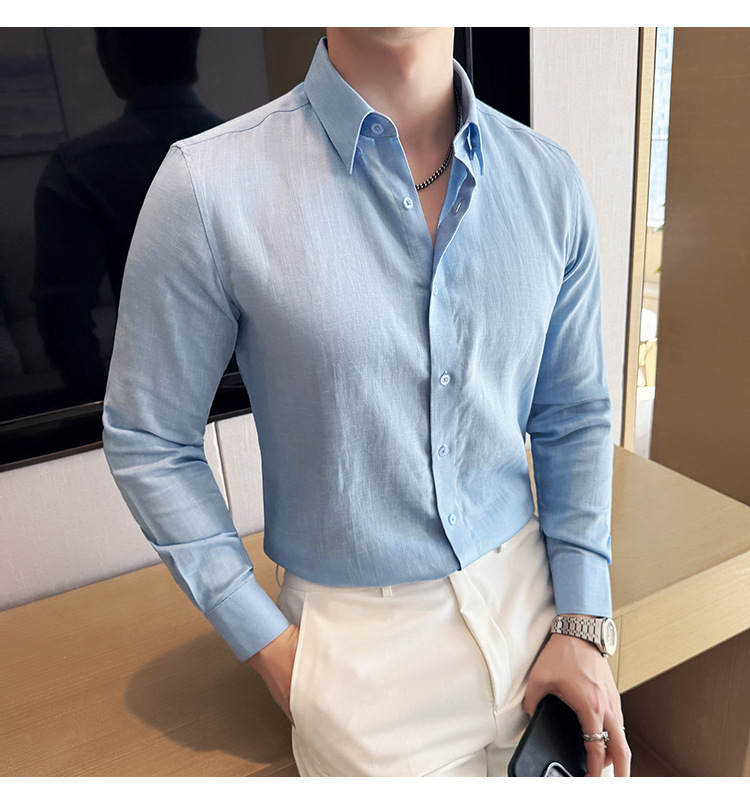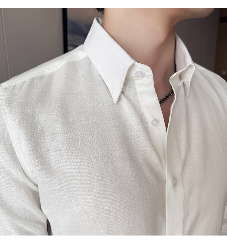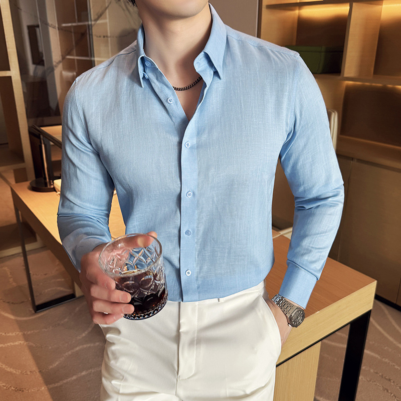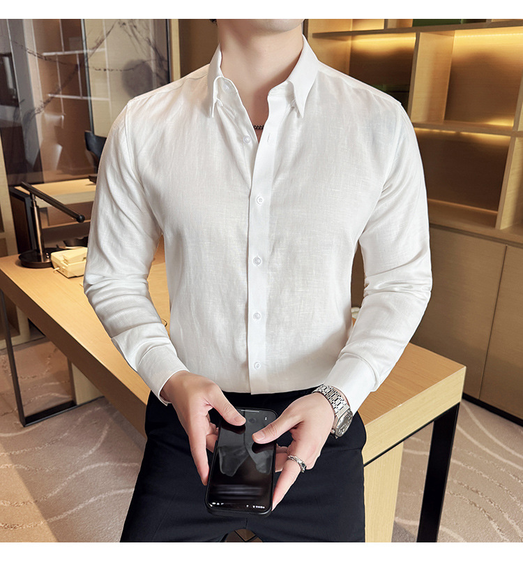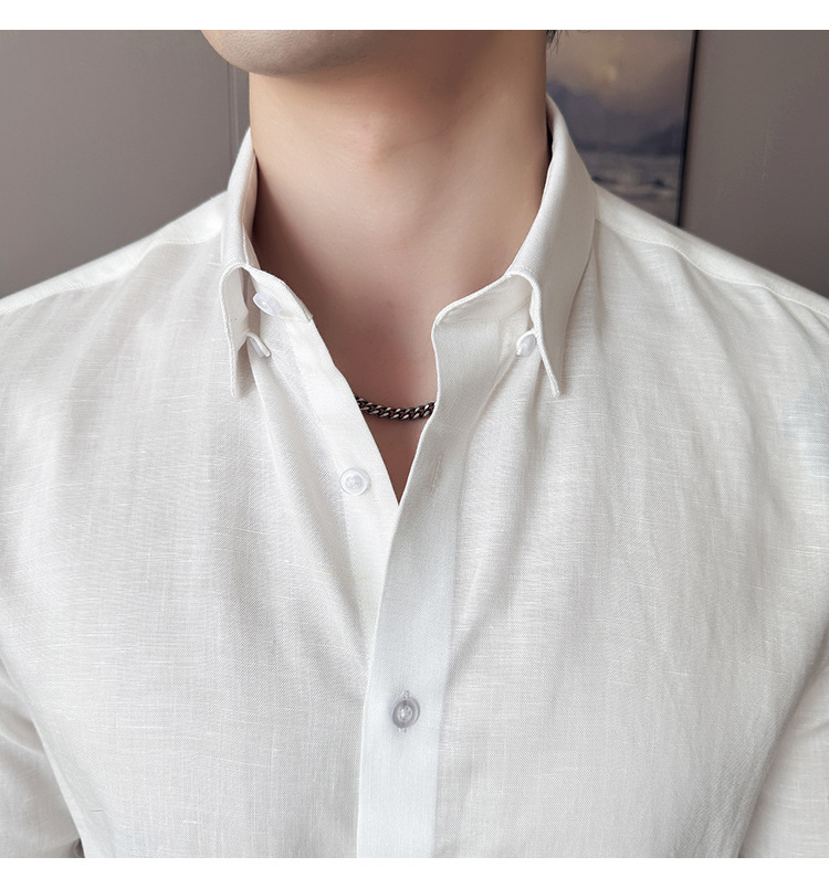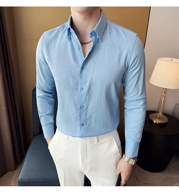 프랑스 수입 린넨 셔츠 남성용 고급 비즈니스 캐주얼 통기성 텐셀 셔츠 린넨 탑