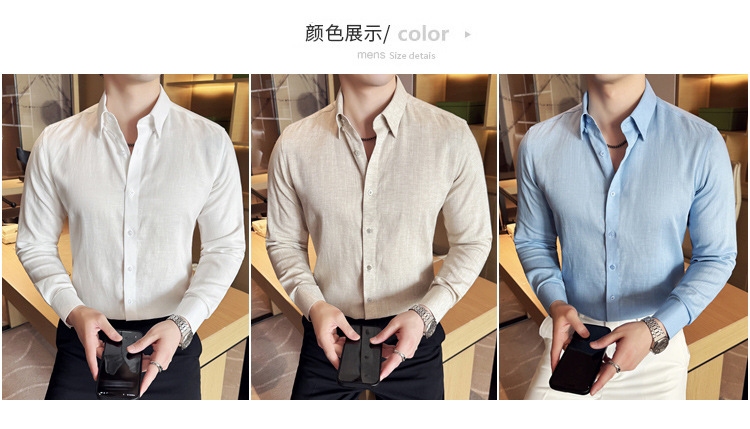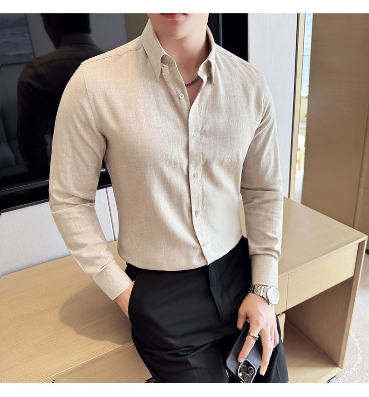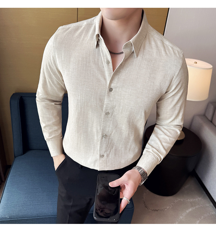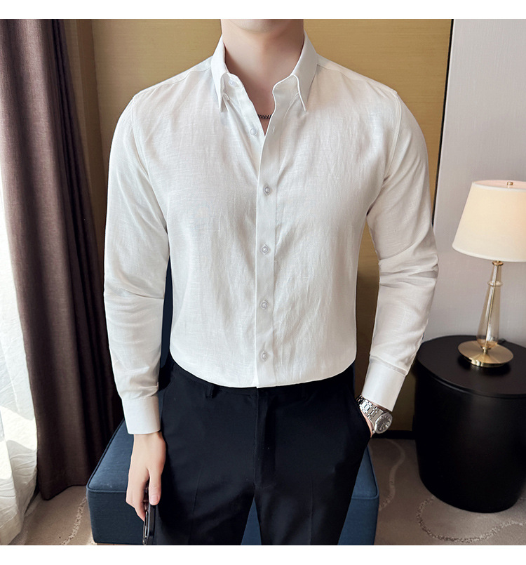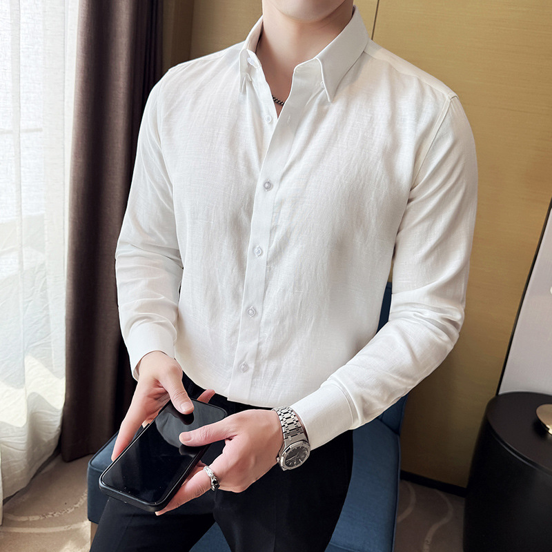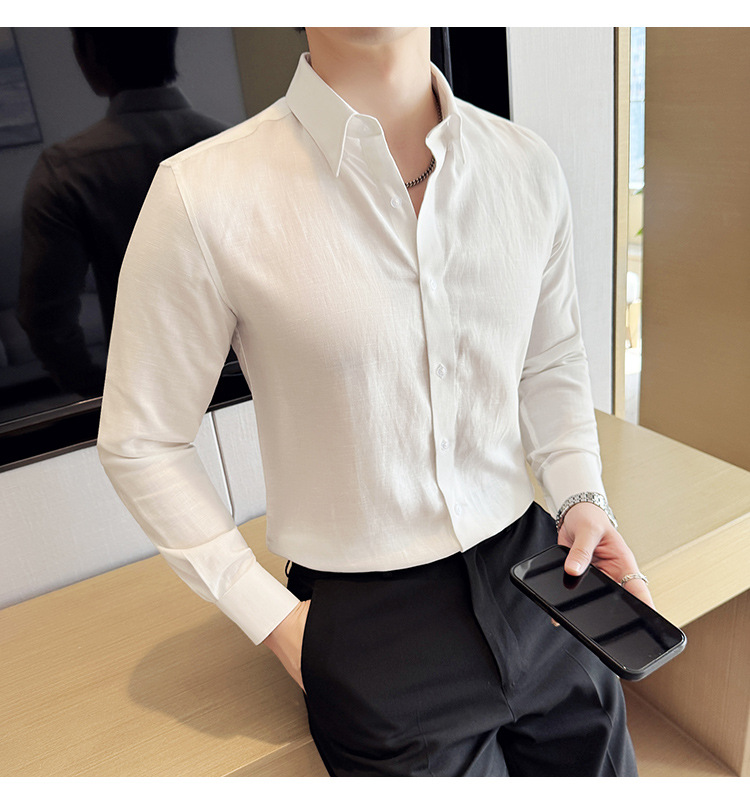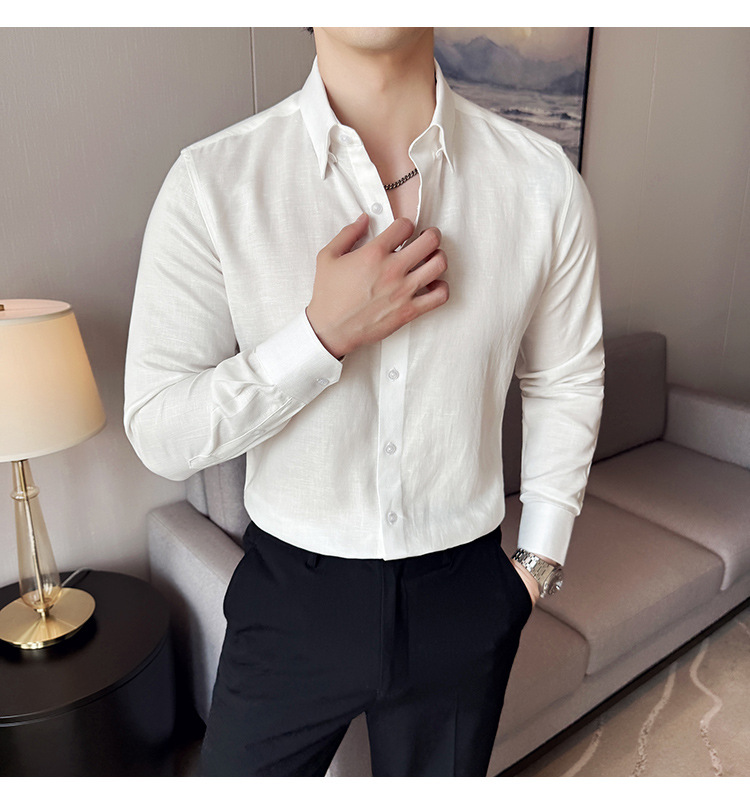 프랑스 수입 린넨 셔츠 남성용 고급 비즈니스 캐주얼 통기성 텐셀 셔츠 린넨 탑