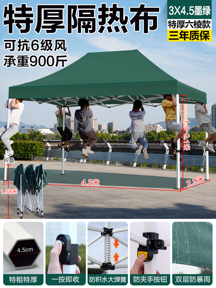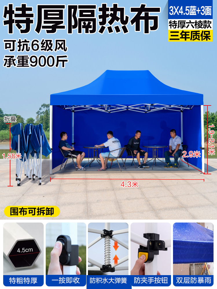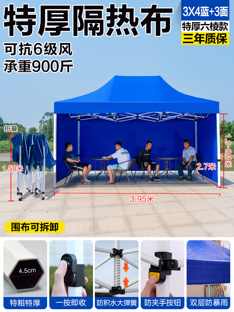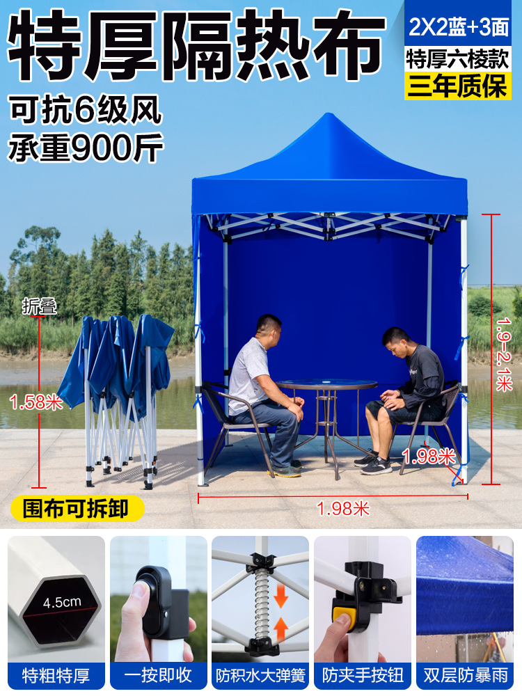 야외 네발 텐트 마구간 캐노피 접이식 대형 방비 활동 두꺼운 캔버스 태양 우산 4 코너 차양스토어 가기