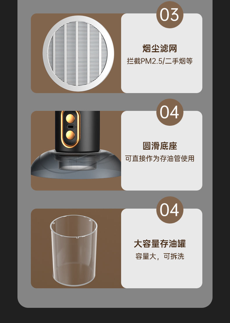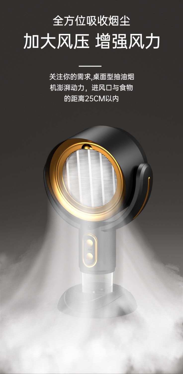 • 로즈 골드 충전식 레인지후드 2-in-1 청정기