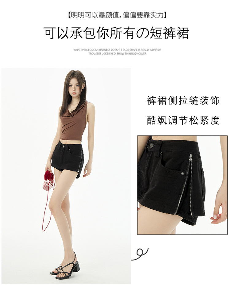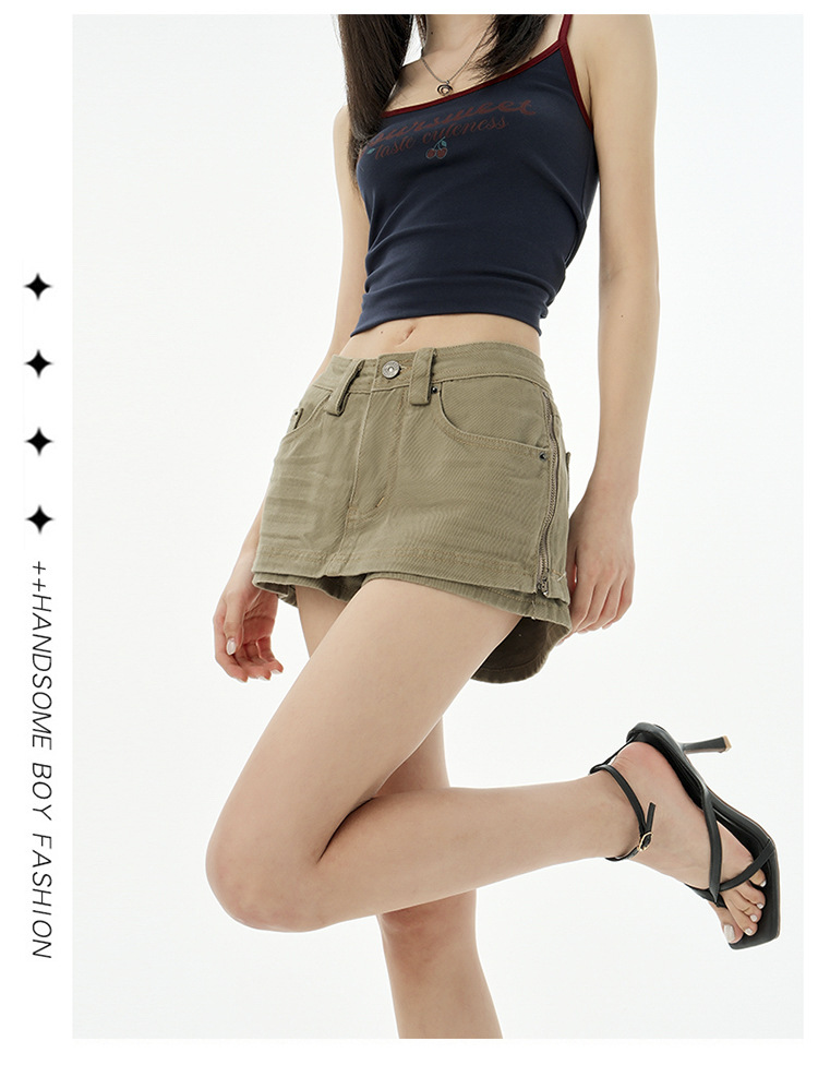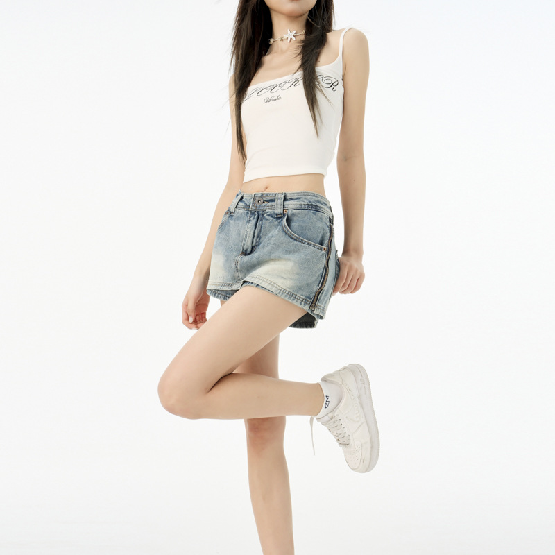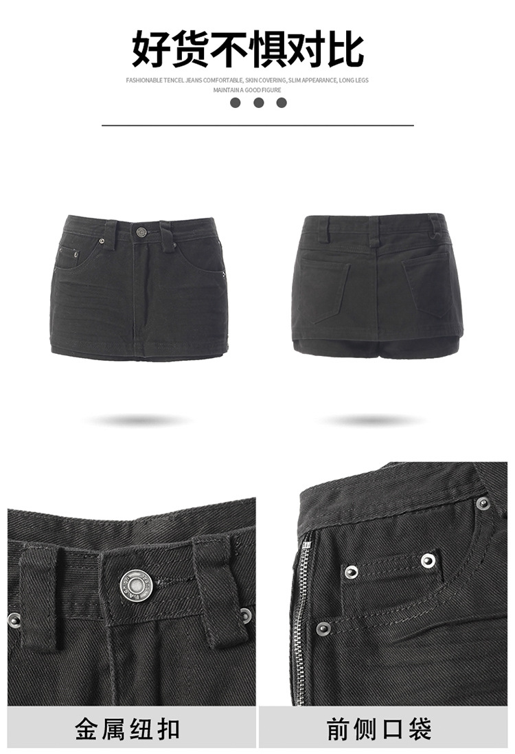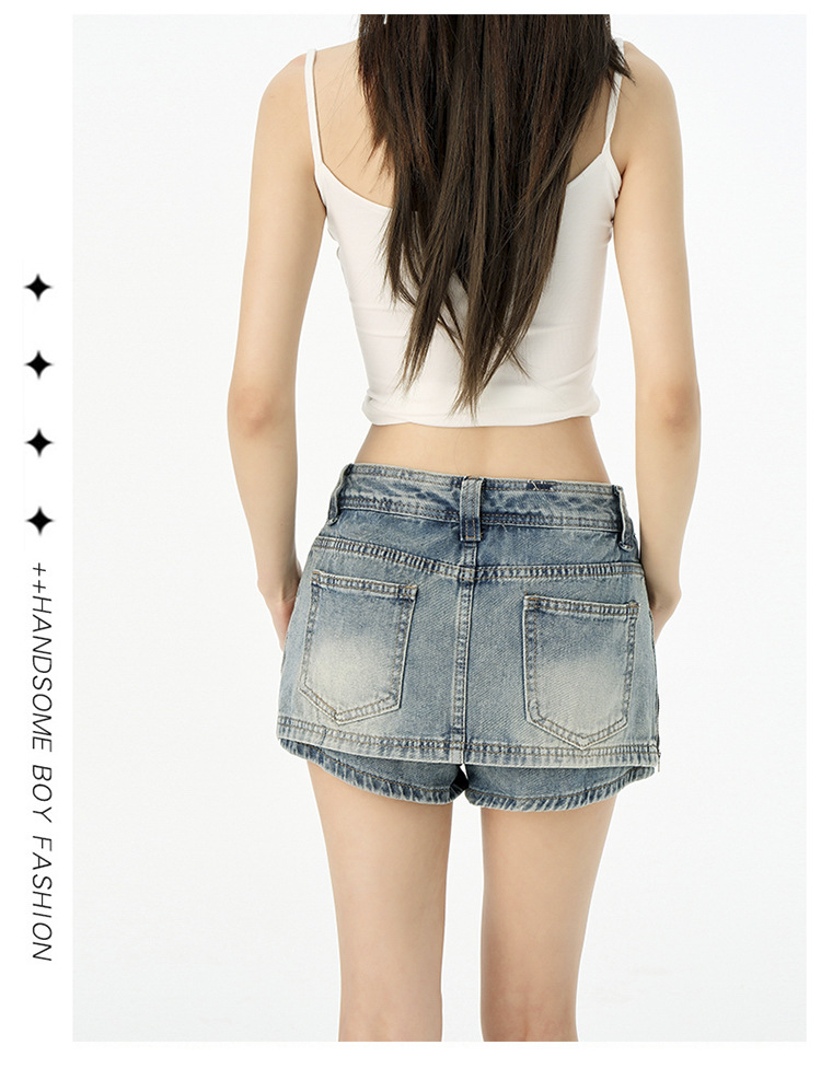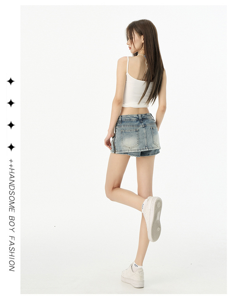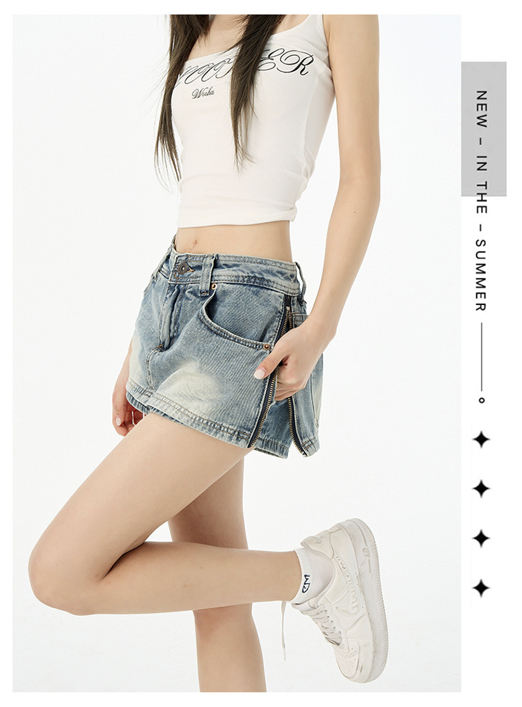 아메리칸 핫걸 로우 웨이스트 반바지 스커트 새로운 스타일의 사이드 지퍼 입체 주름 작은 초단형 데님 스커트스토어 가기