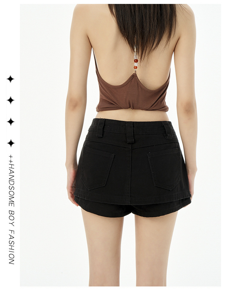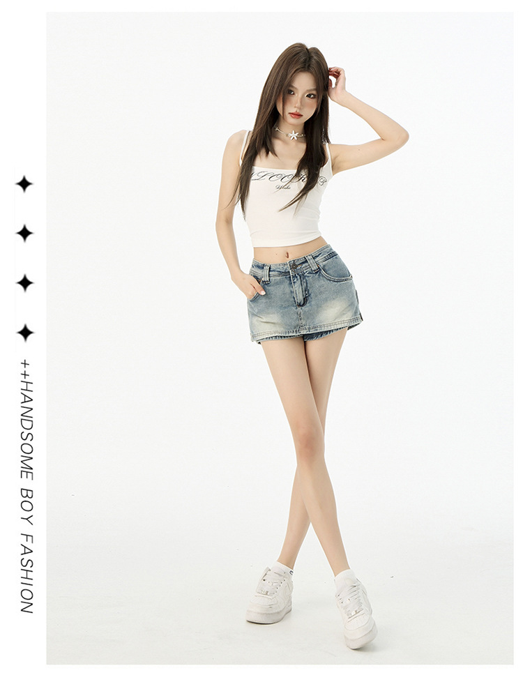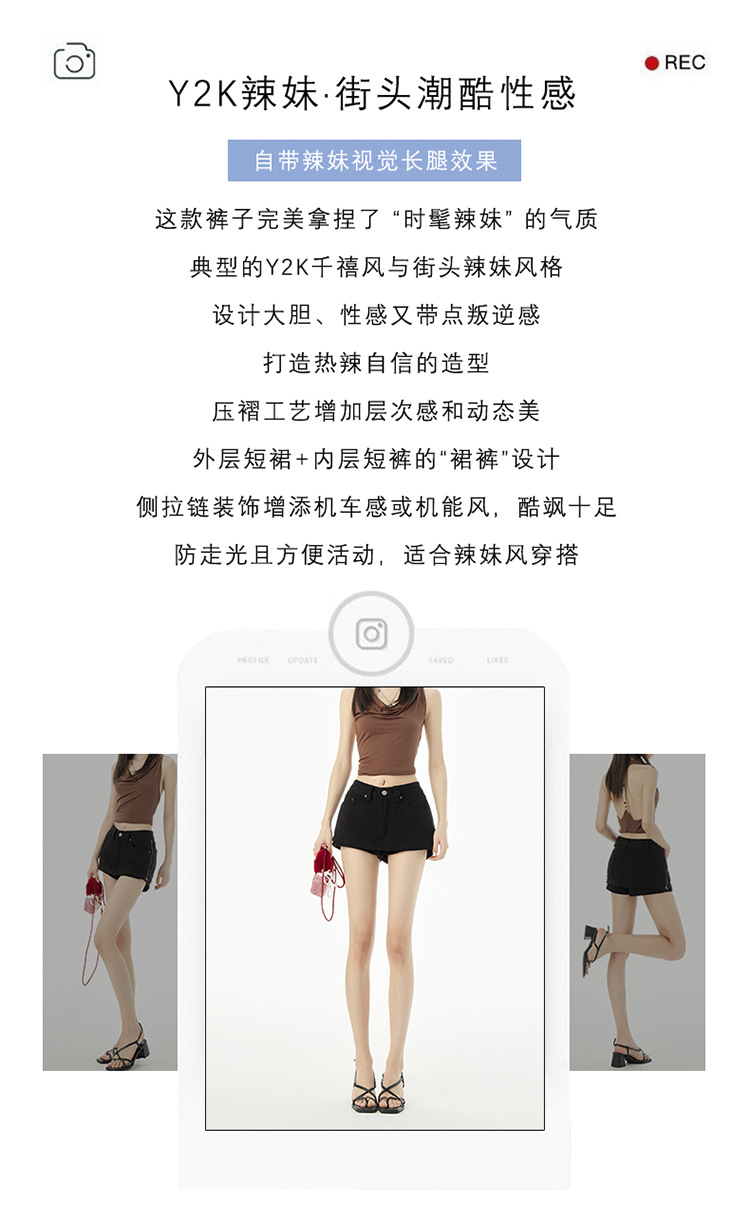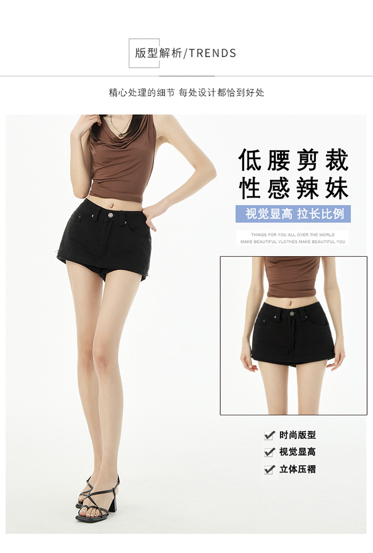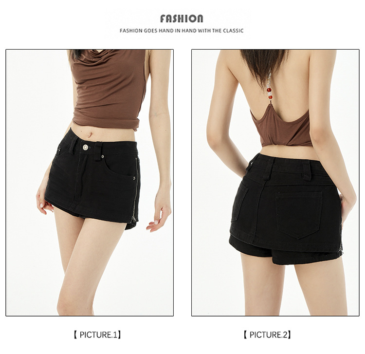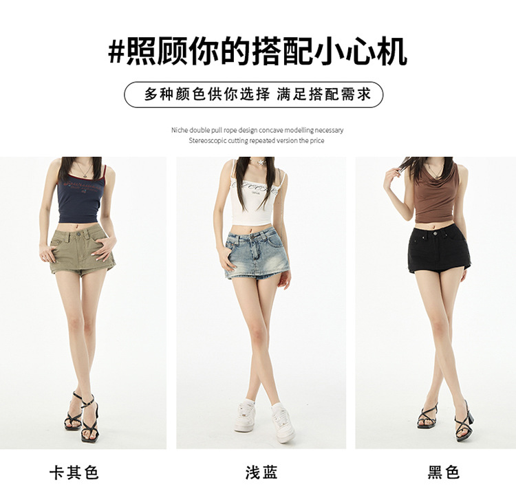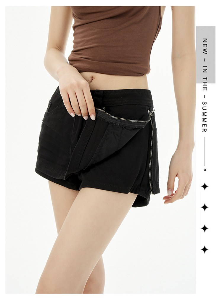 아메리칸 핫걸 로우 웨이스트 반바지 스커트 새로운 스타일의 사이드 지퍼 입체 주름 작은 초단형 데님 스커트스토어 가기