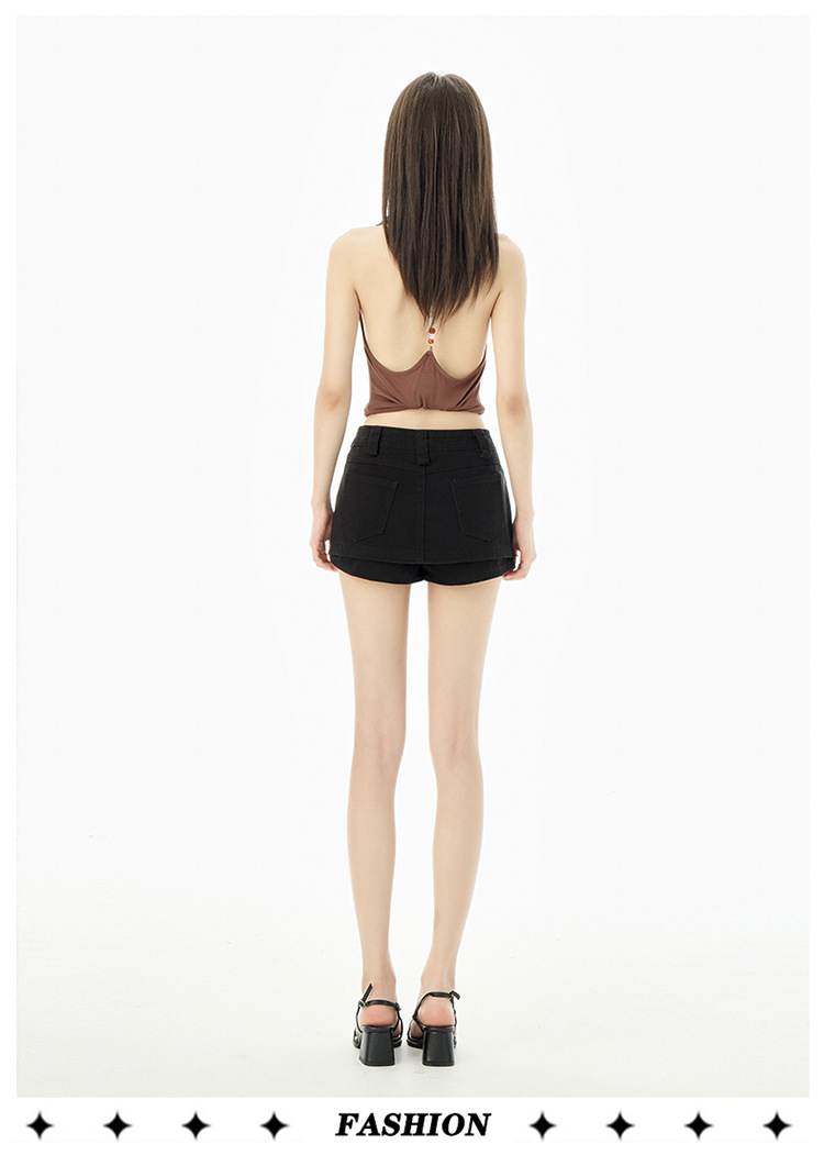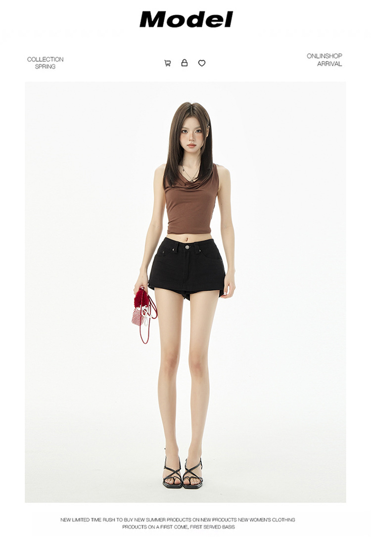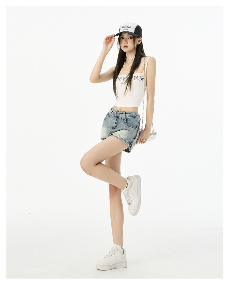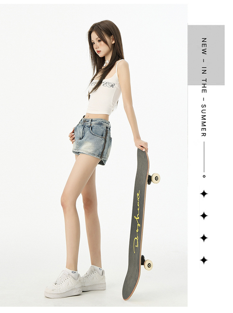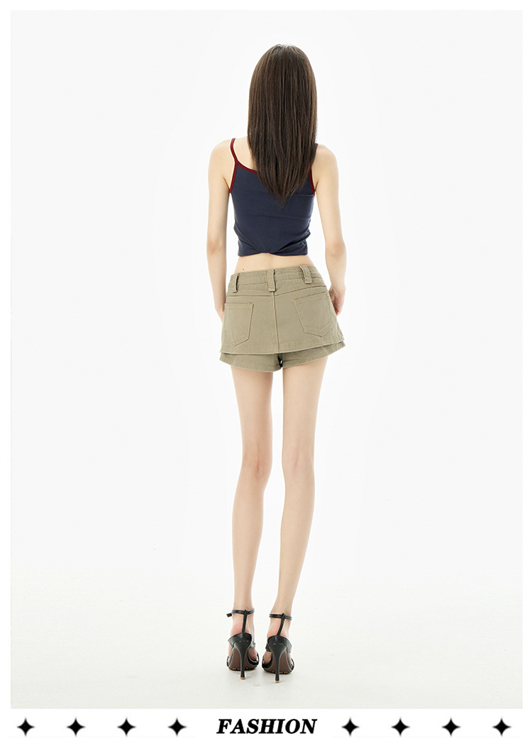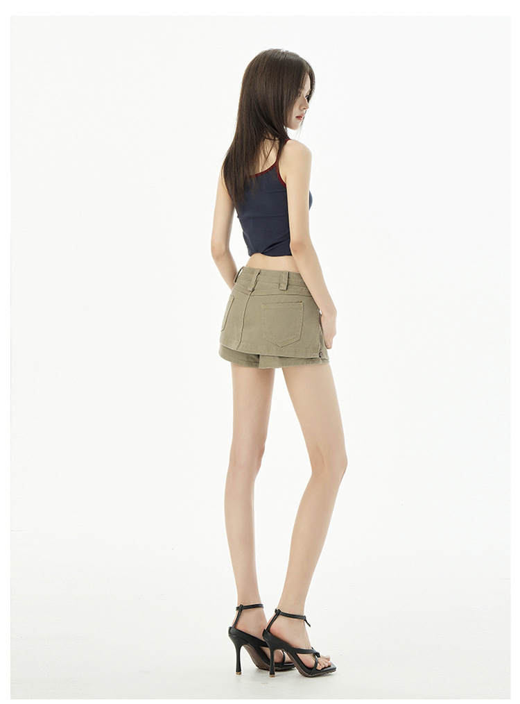 아메리칸 핫걸 로우 웨이스트 반바지 스커트 새로운 스타일의 사이드 지퍼 입체 주름 작은 초단형 데님 스커트스토어 가기