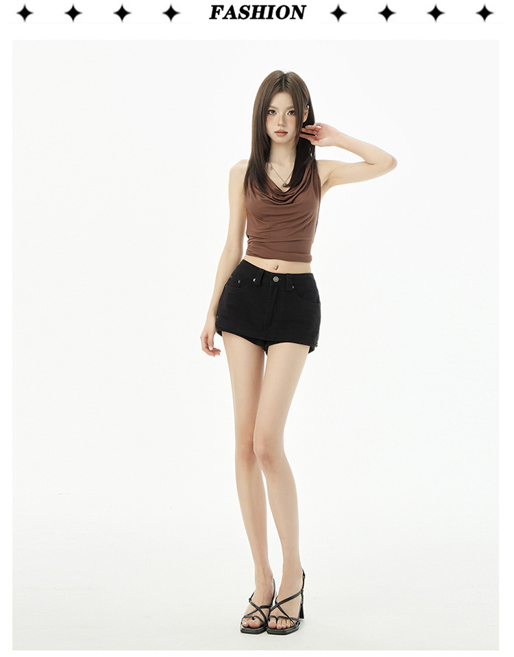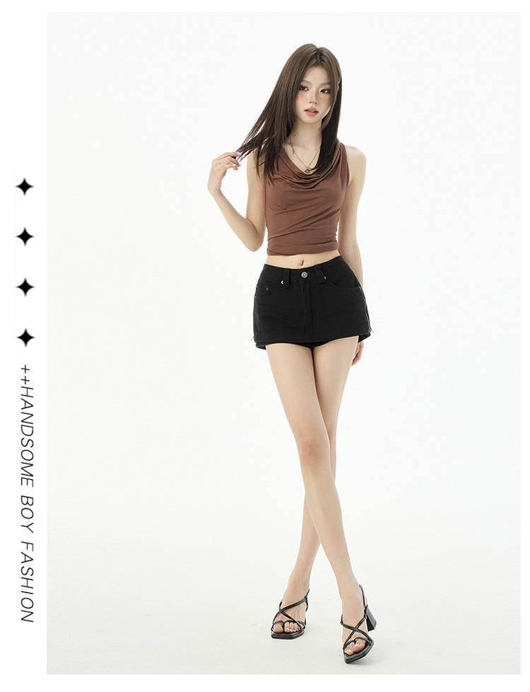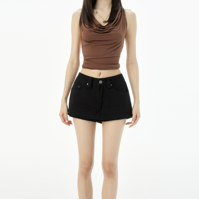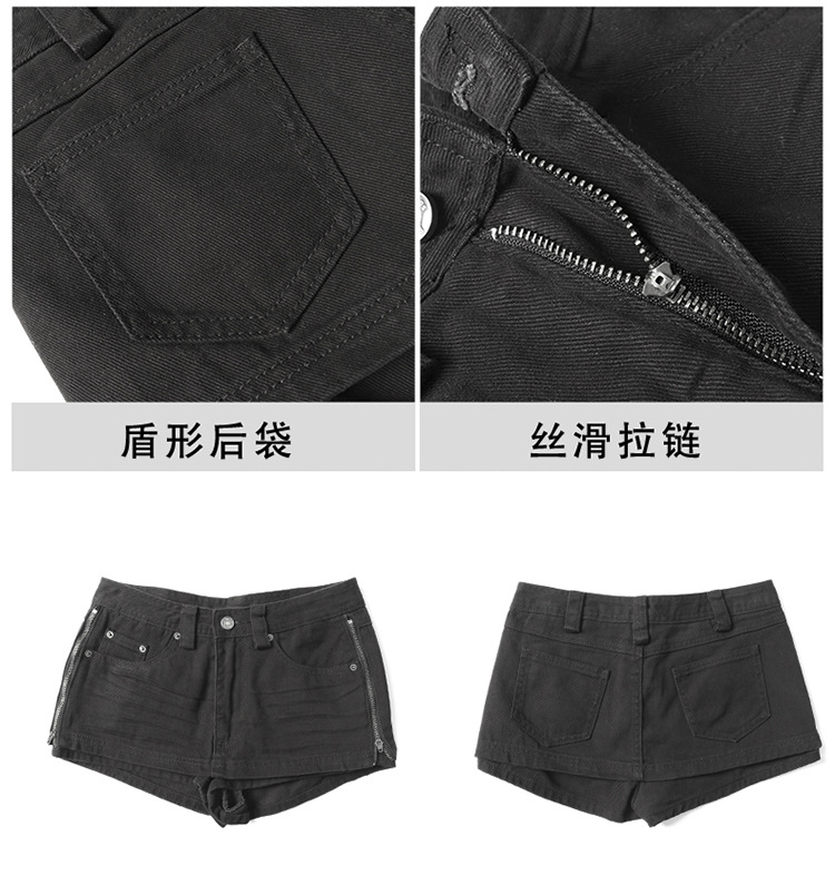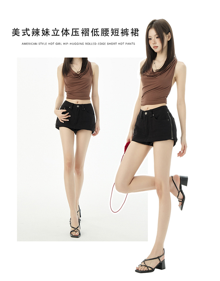아메리칸 핫걸 로우 웨이스트 반바지 스커트 새로운 스타일의 사이드 지퍼 입체 주름 작은 초단형 데님 스커트