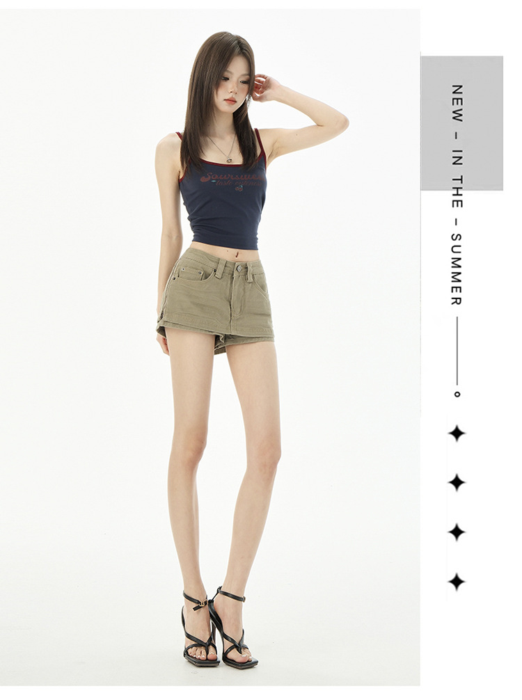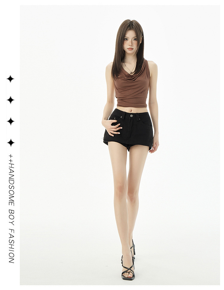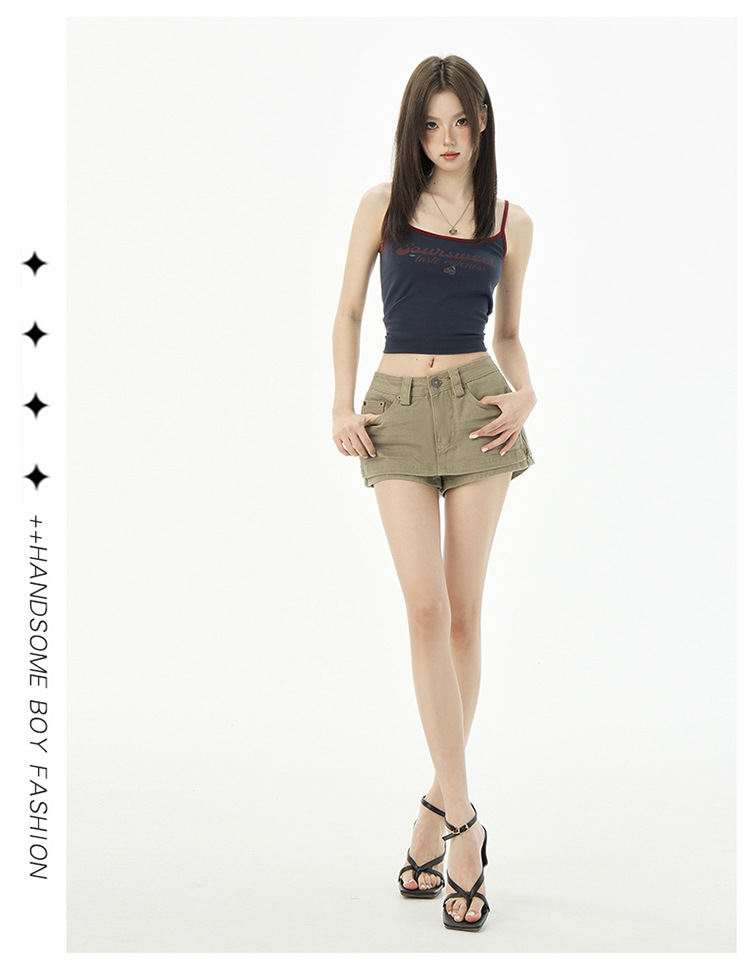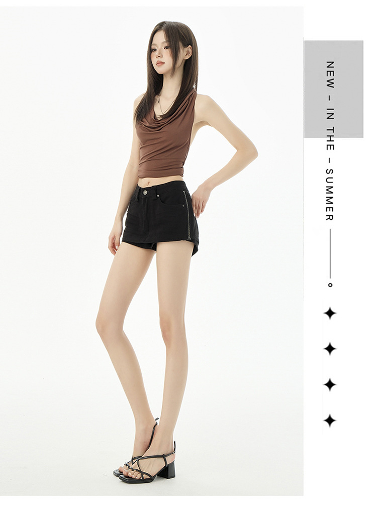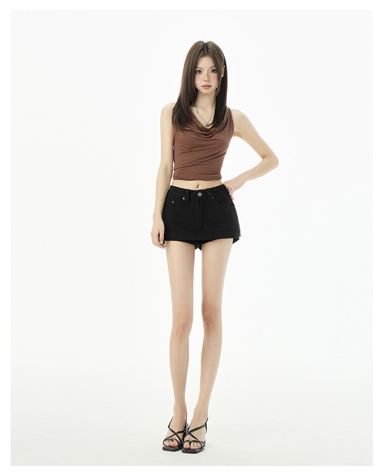 아메리칸 핫걸 로우 웨이스트 반바지 스커트 새로운 스타일의 사이드 지퍼 입체 주름 작은 초단형 데님 스커트