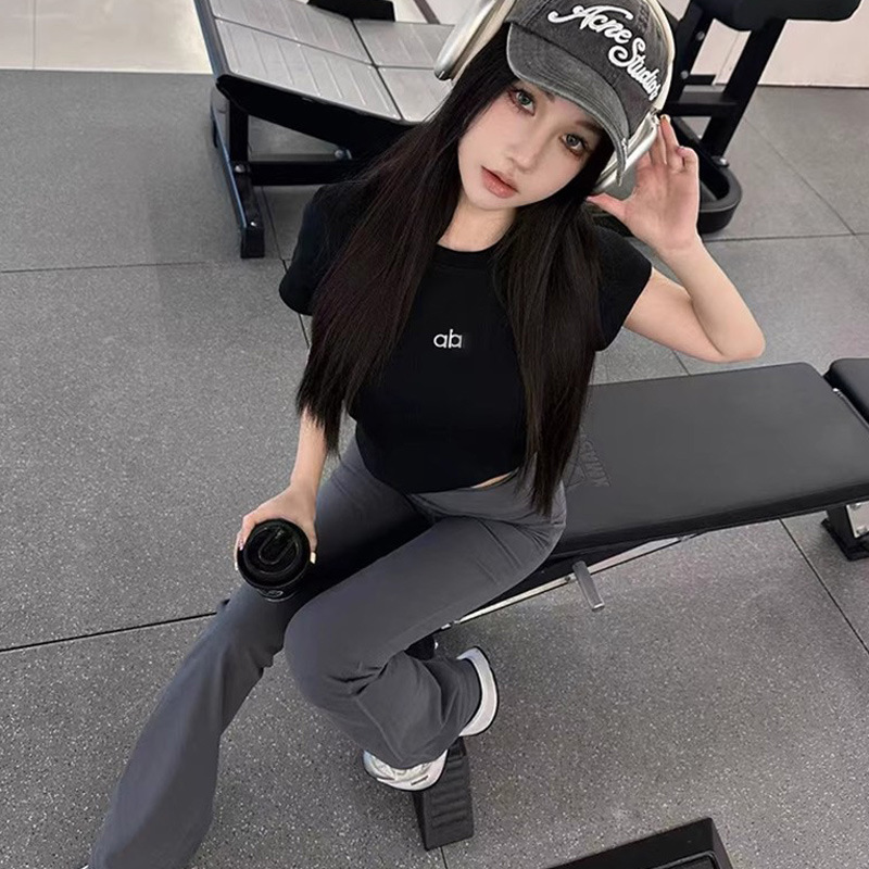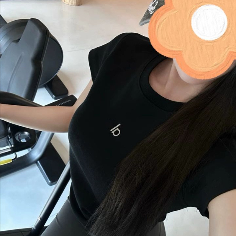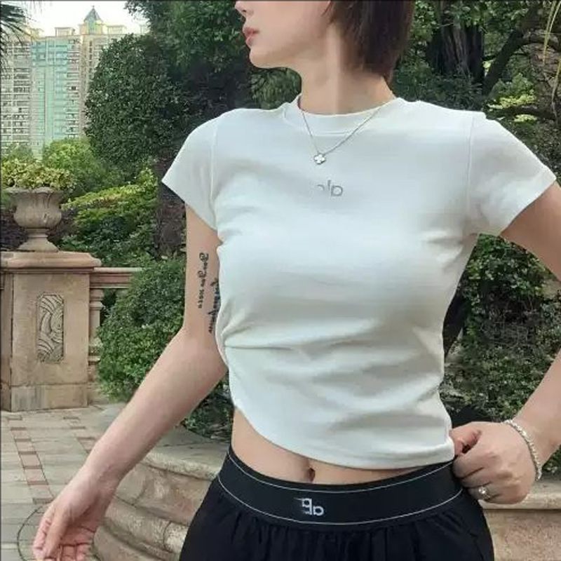 AL * 여름 새로운 반사 편지 인쇄 반팔 티셔츠 여성용 스트레치 슬림 핏 슬리밍 스포츠 어깨 크루 넥 탑스토어 가기