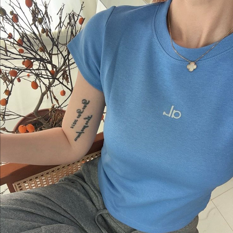 AL * 여름 새로운 반사 편지 인쇄 반팔 티셔츠 여성용 스트레치 슬림 핏 슬리밍 스포츠 어깨 크루 넥 탑