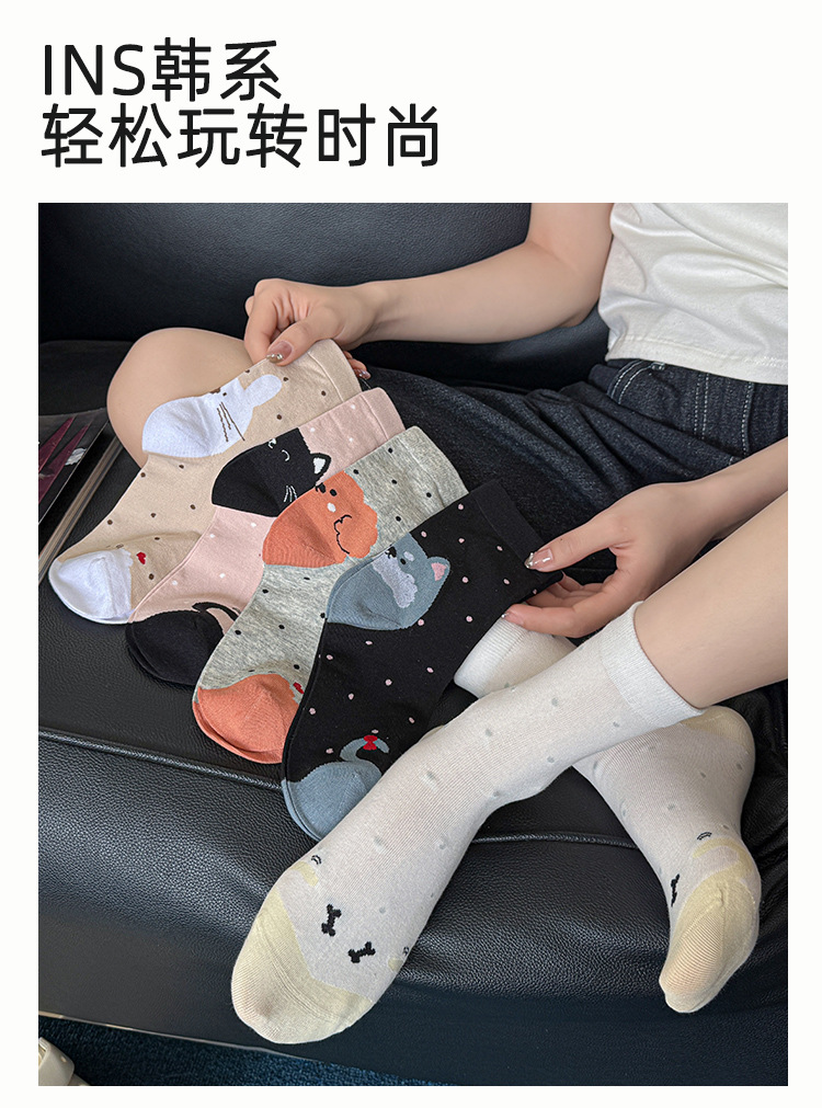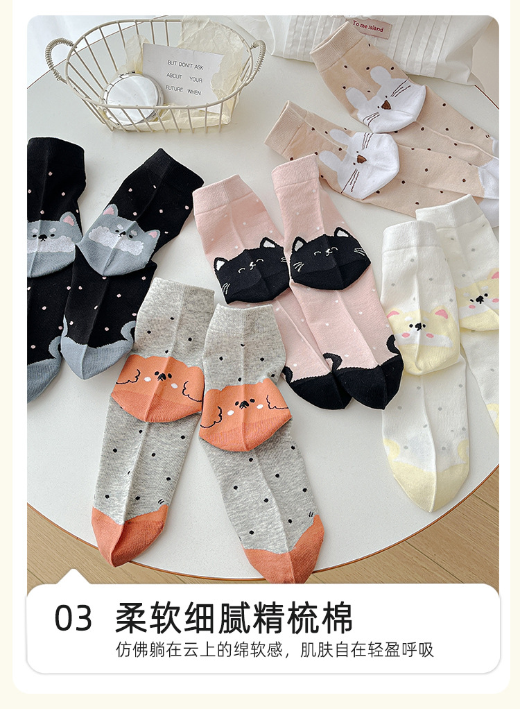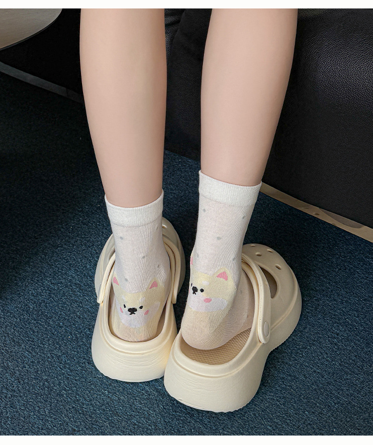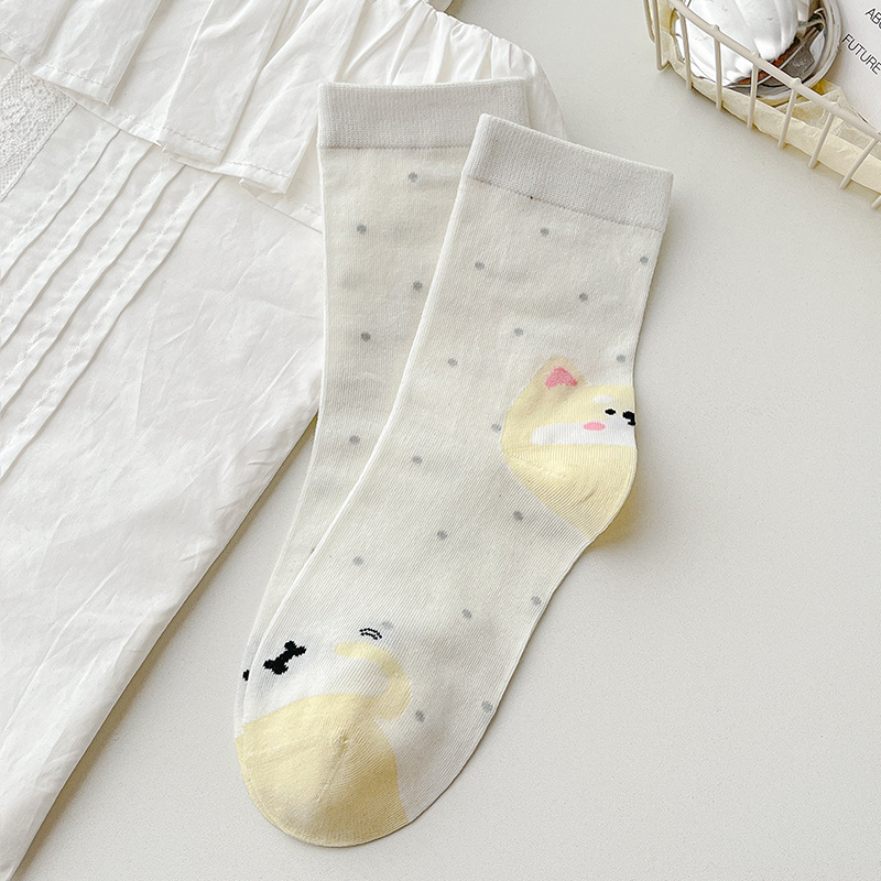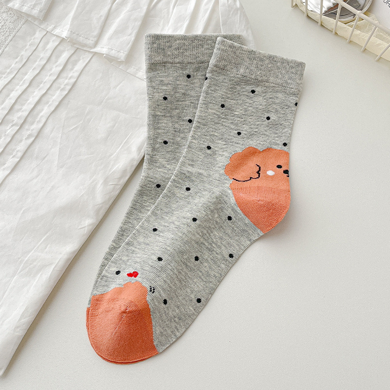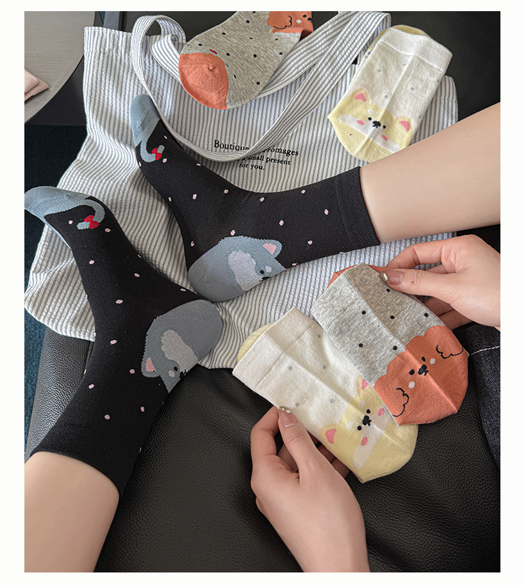 【 30% off 재고정리】여성용 만화 강아지 양말, 봄/가을 중간길이 양말, 여성용 무봉제 보풀방지 인스타 트렌드 양말 도매스토어 가기
