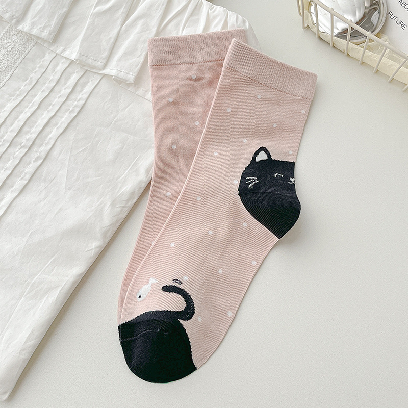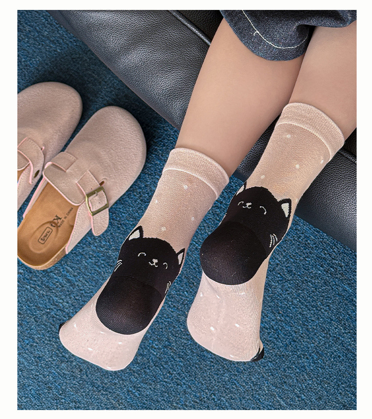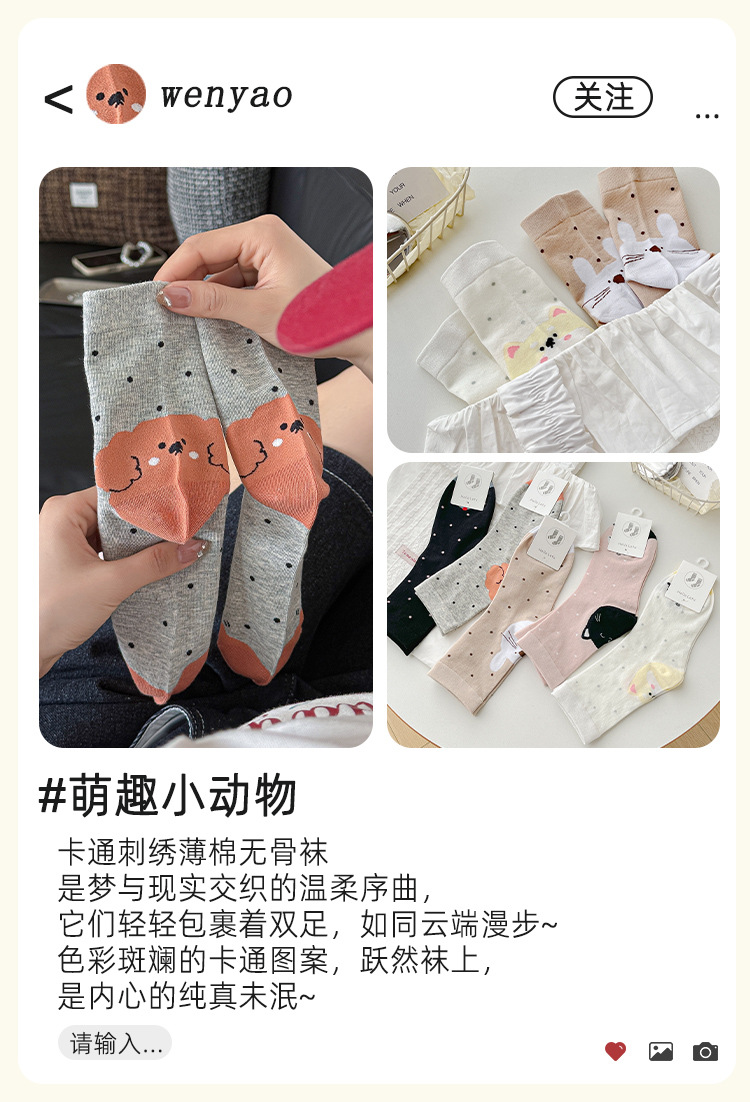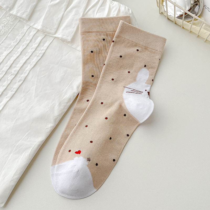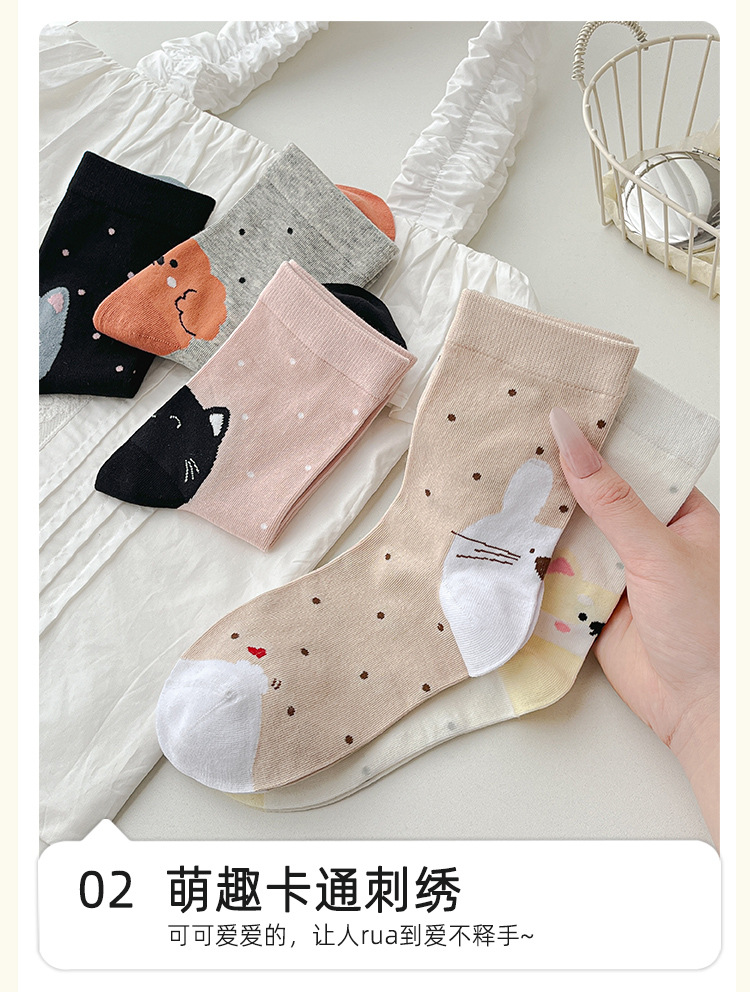 【 30% off 재고정리】여성용 만화 강아지 양말, 봄/가을 중간길이 양말, 여성용 무봉제 보풀방지 인스타 트렌드 양말 도매스토어 가기