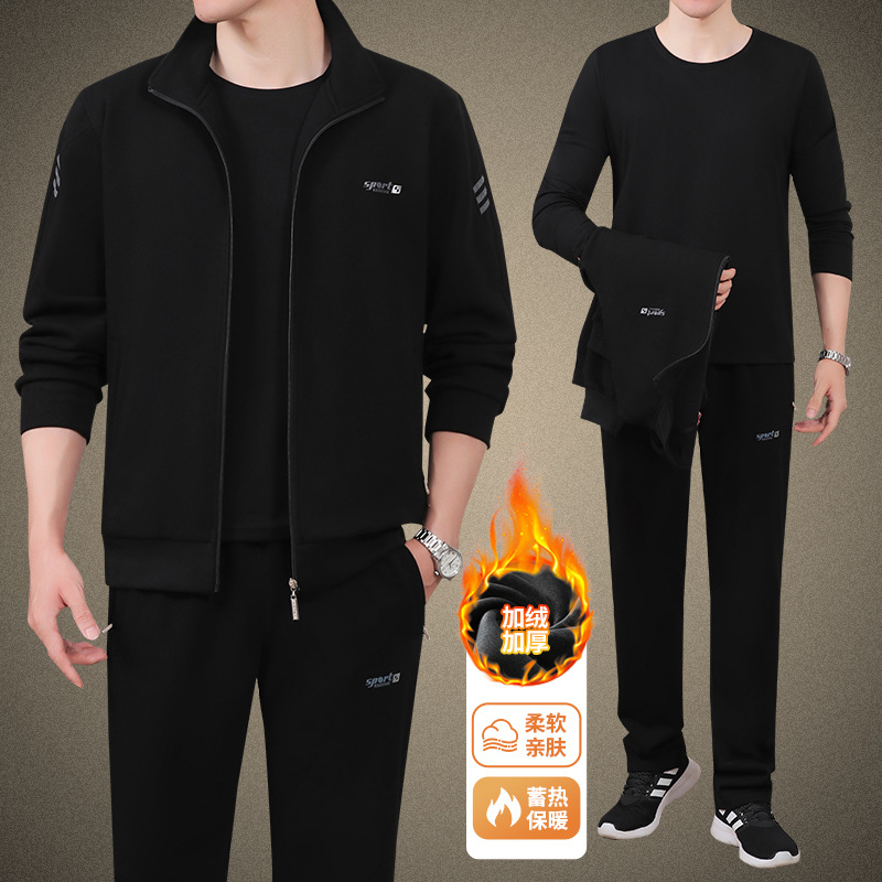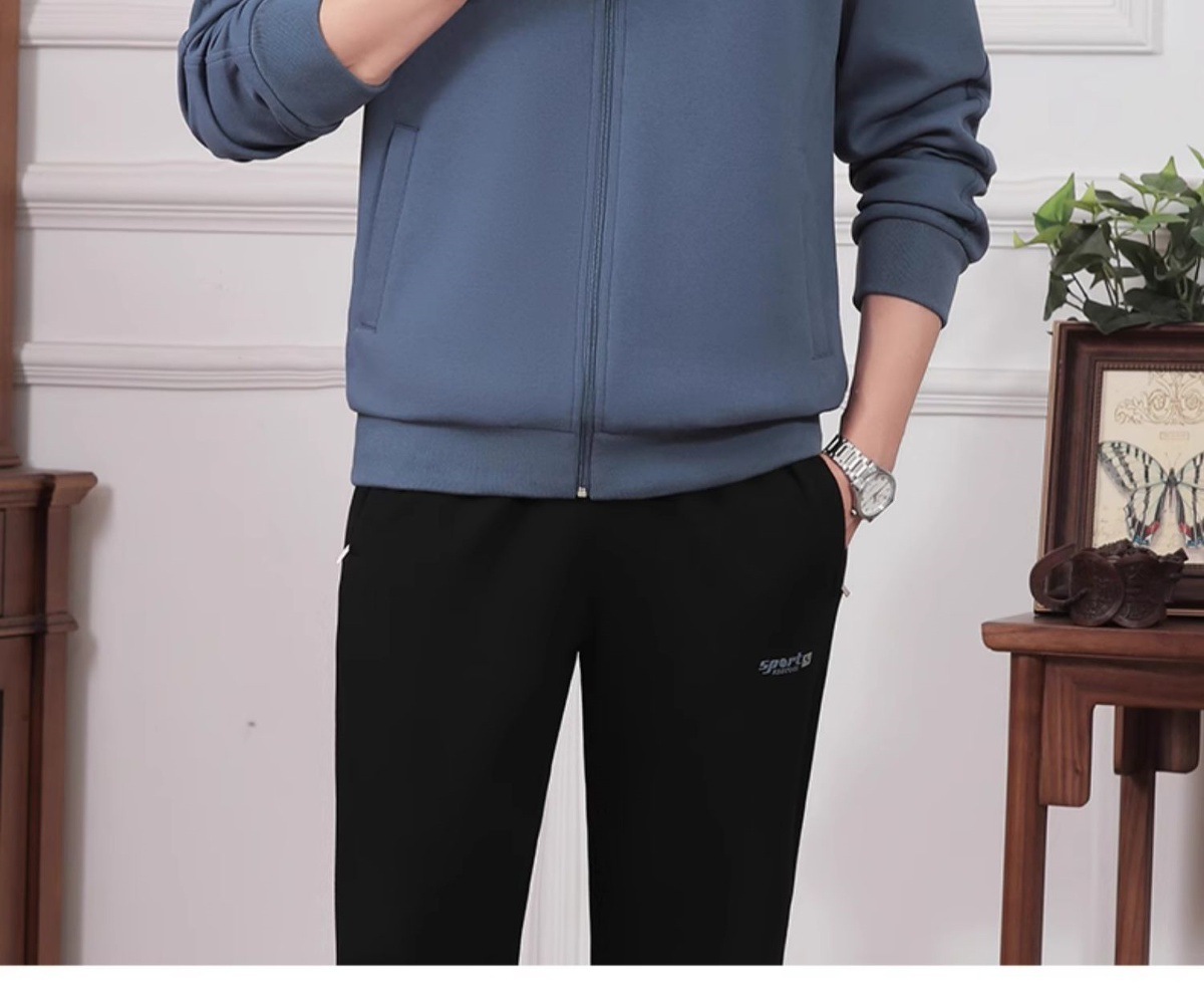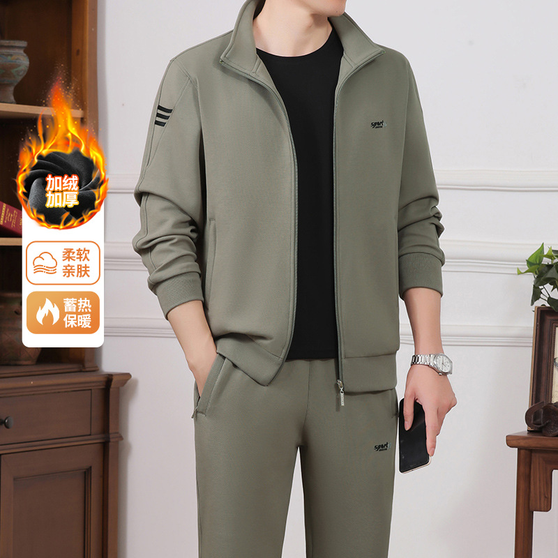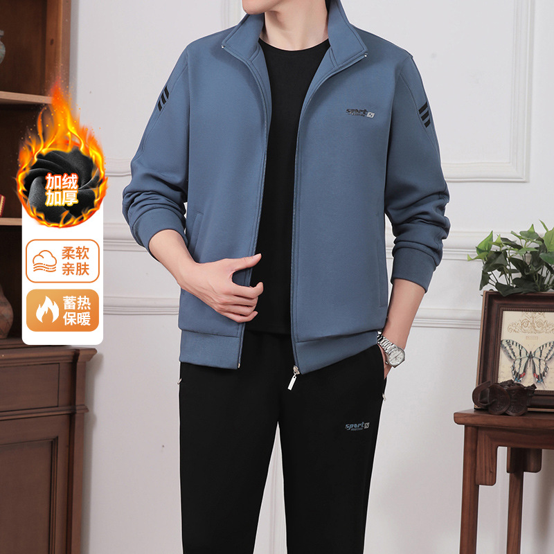 중년 및 노인 남성 스포츠 정장 봄, 가을 아빠 캐주얼 재킷 두꺼운 벨벳 느슨한 스포츠 의류스토어 가기