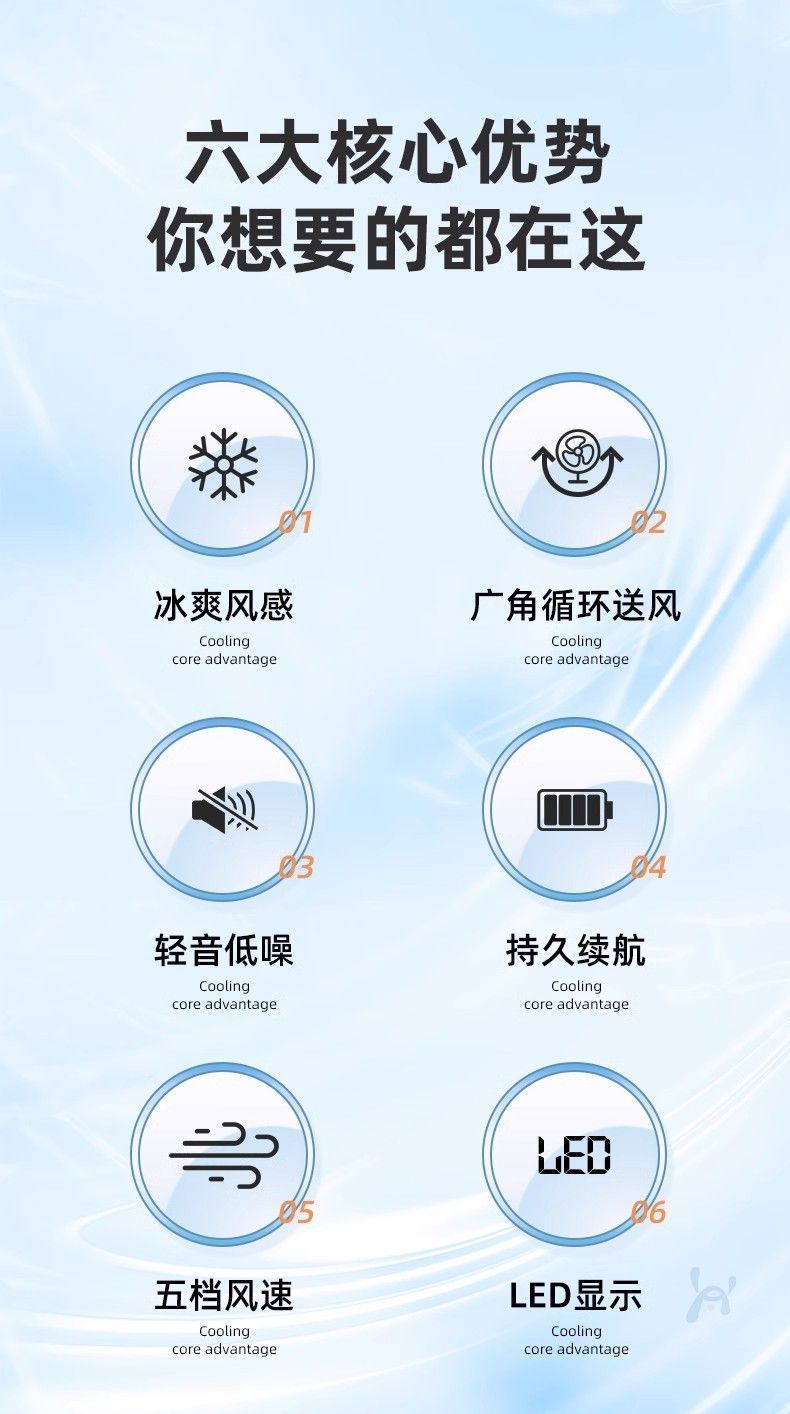 • LED 스마트 스크린 디스플레이 [리틀 블루 블루] 5단 풍속 조절, 조용한 소음 감소